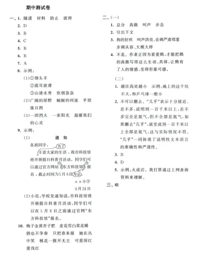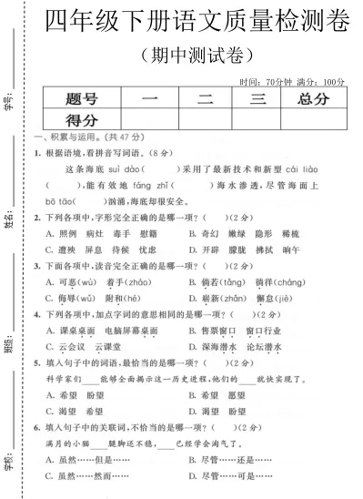 >2026春 四年级语文 期中测试卷 可以直接下载打印