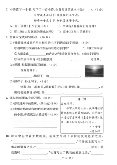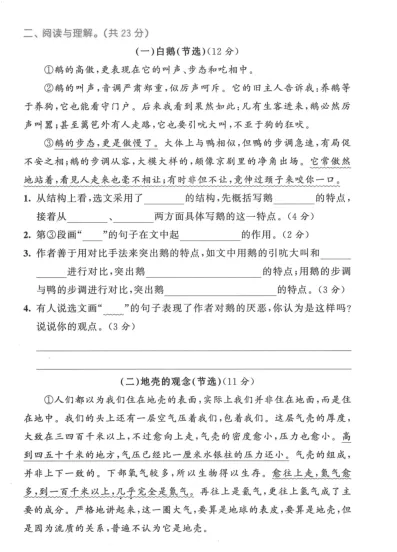 七下语文月考、期中、期末试卷期末测试卷