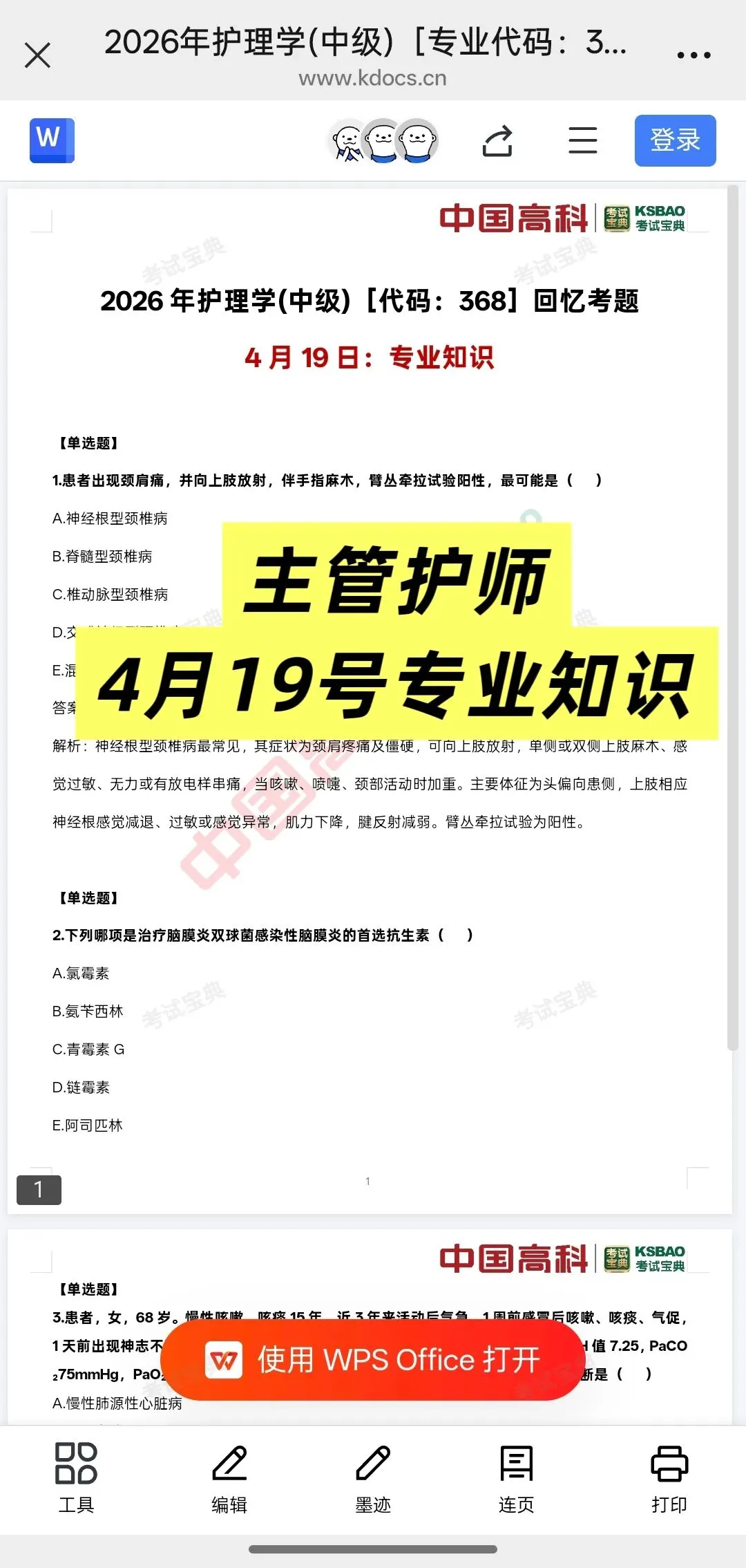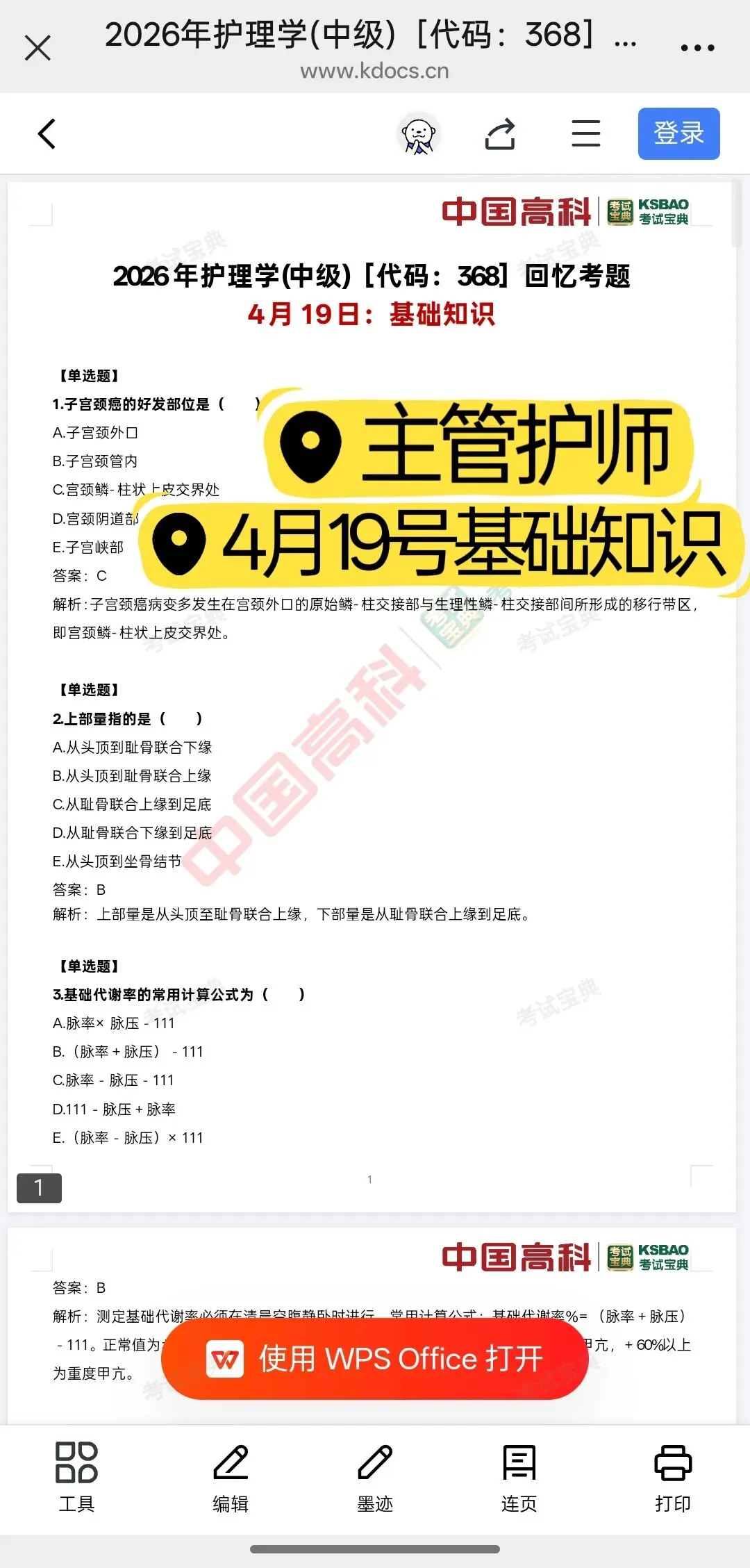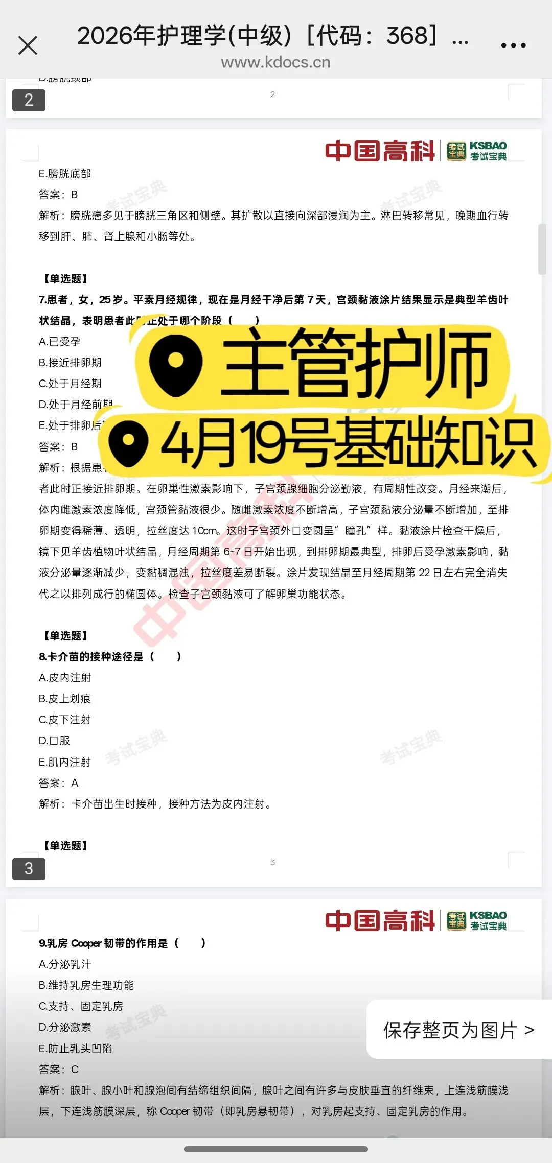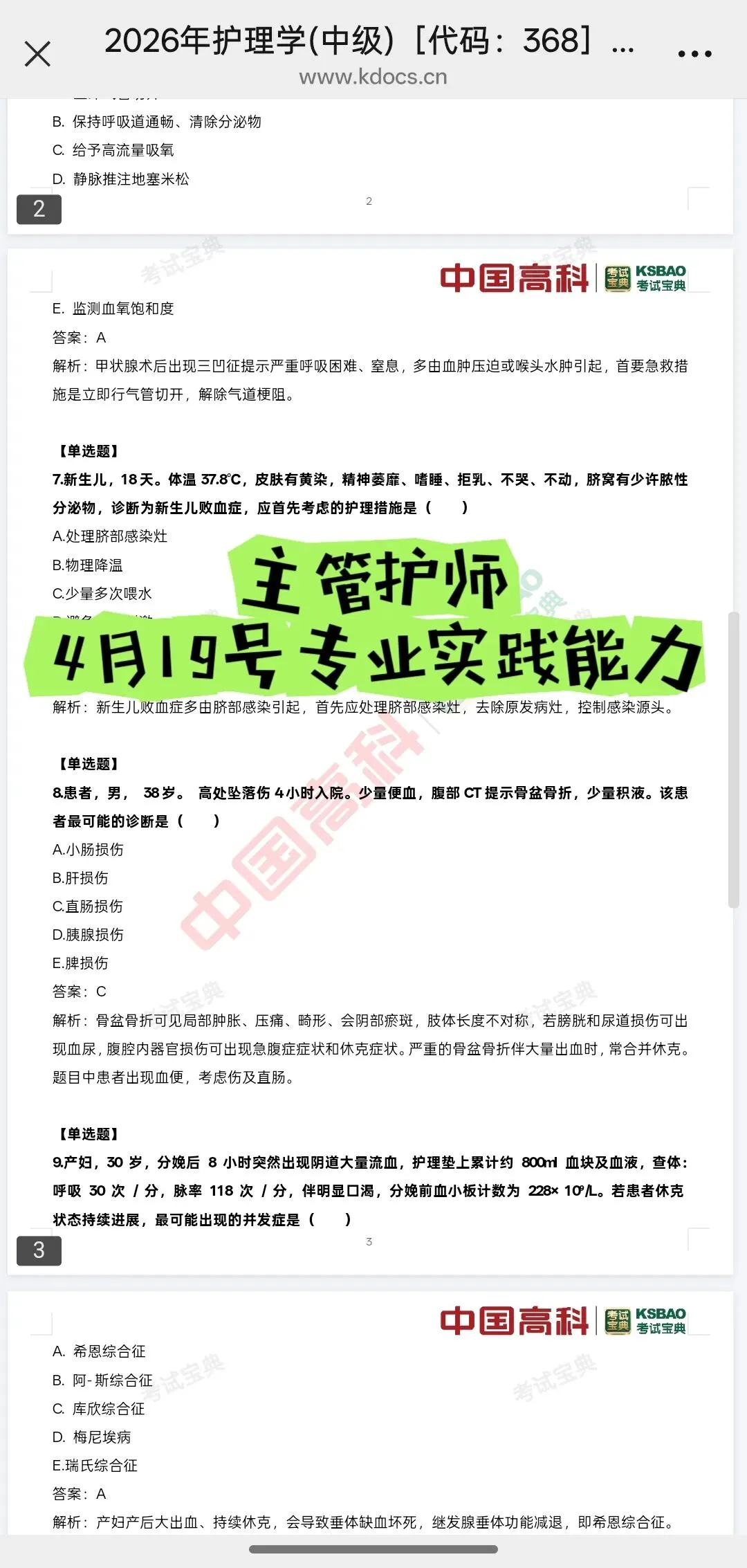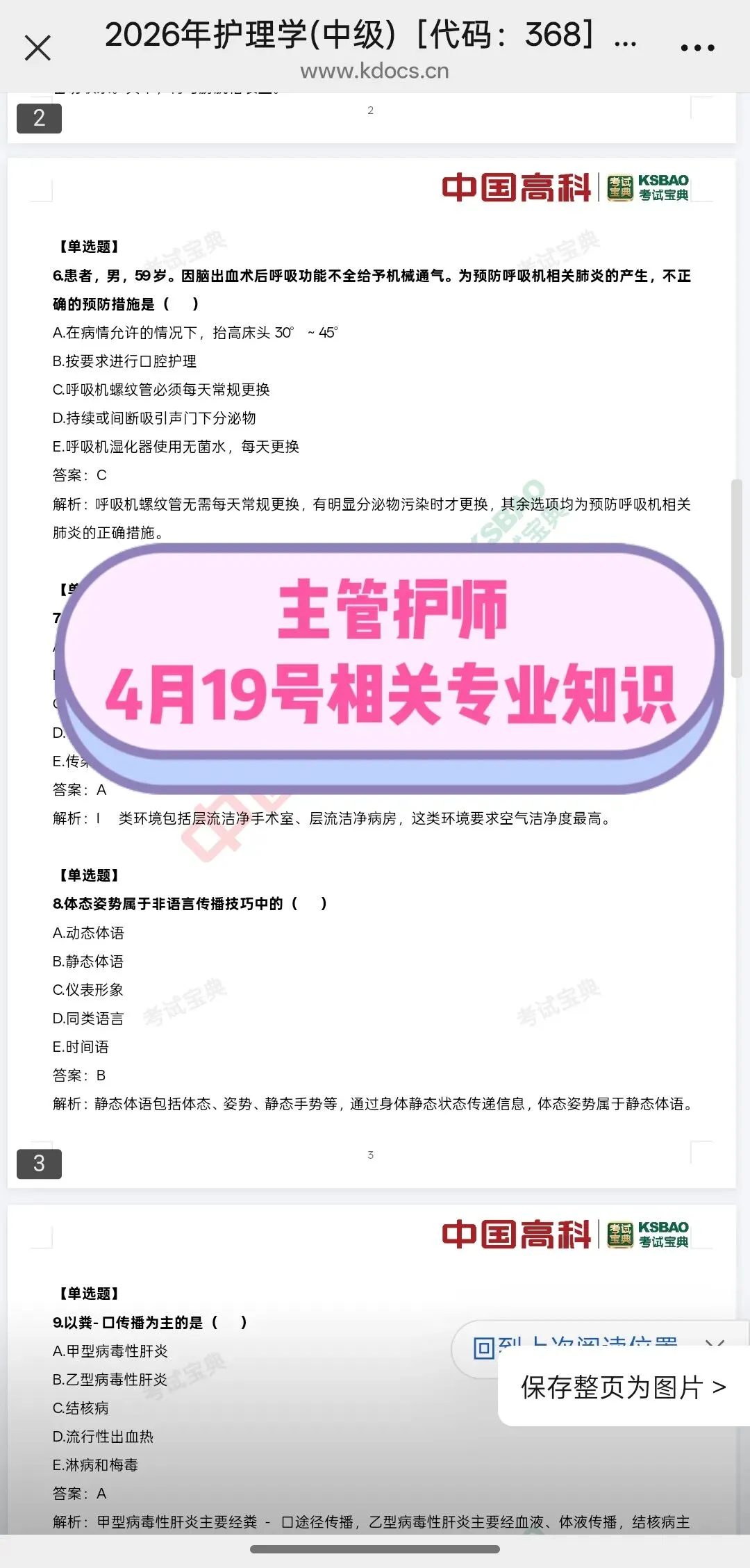 各科目都会整理,也有初级的,以下是主管护师部分整理的回忆题覆盖超全: