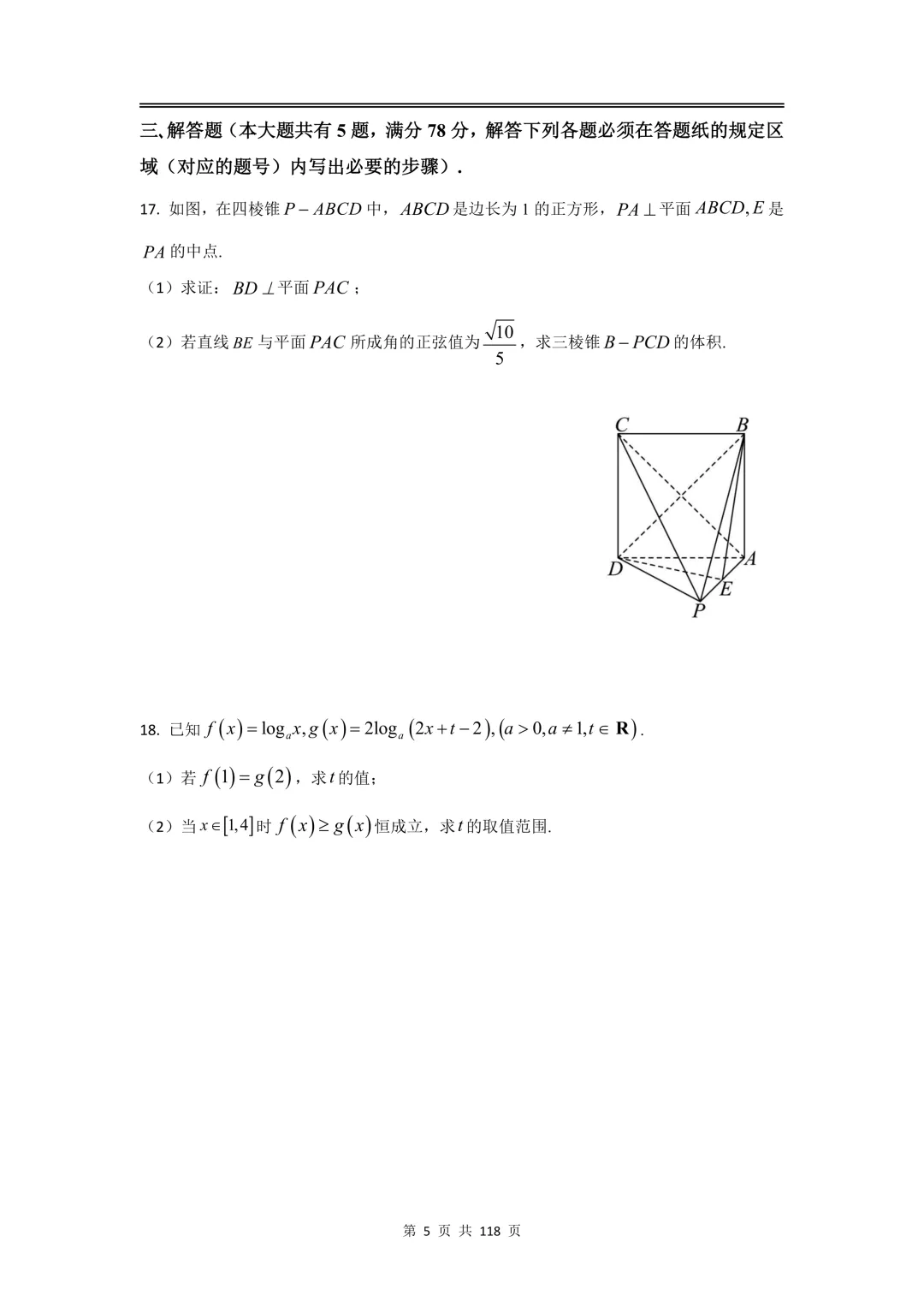 高考二模河东区数学试卷与答案