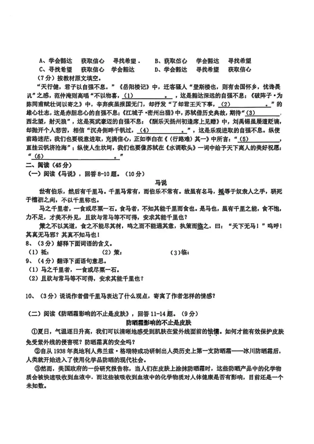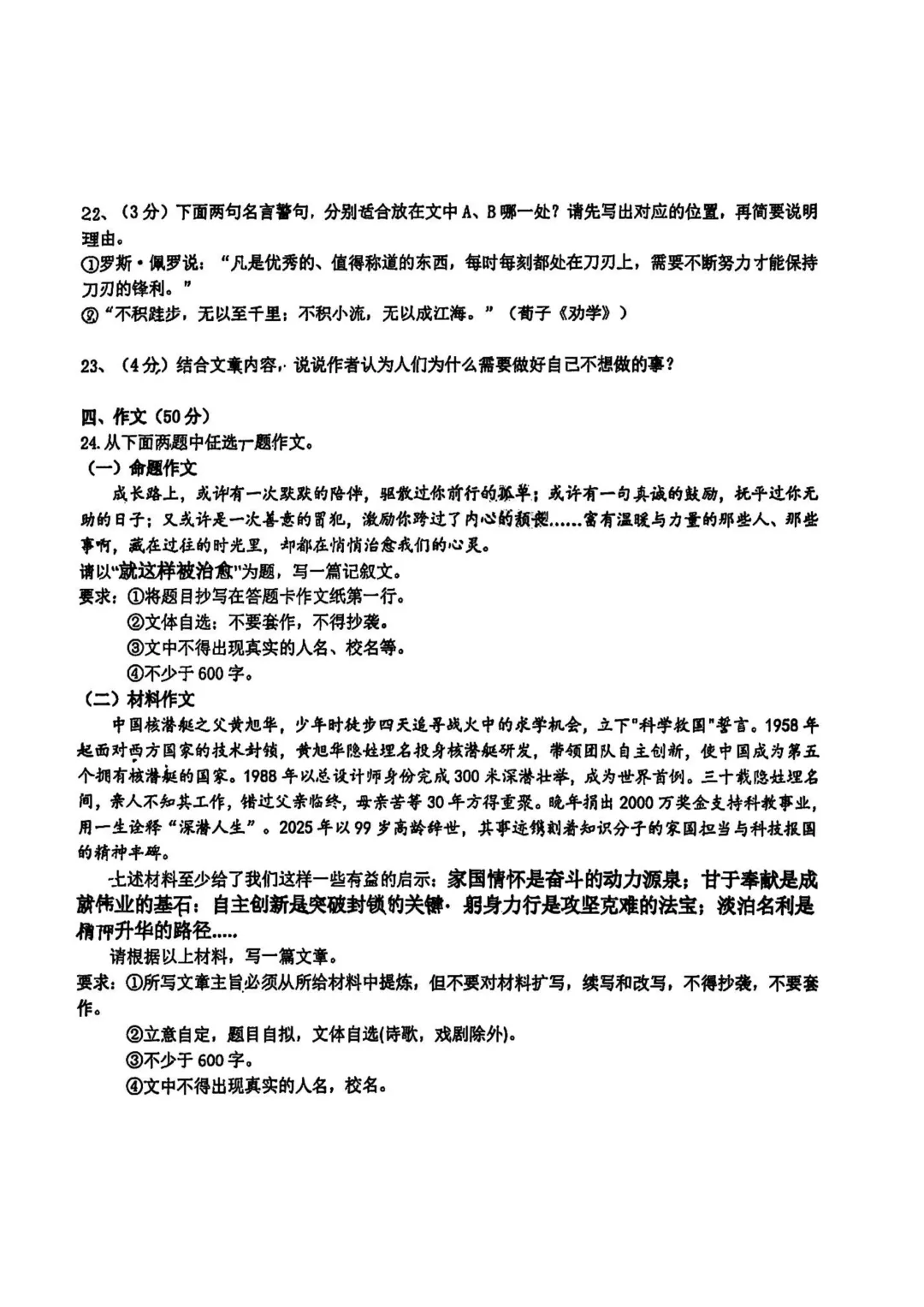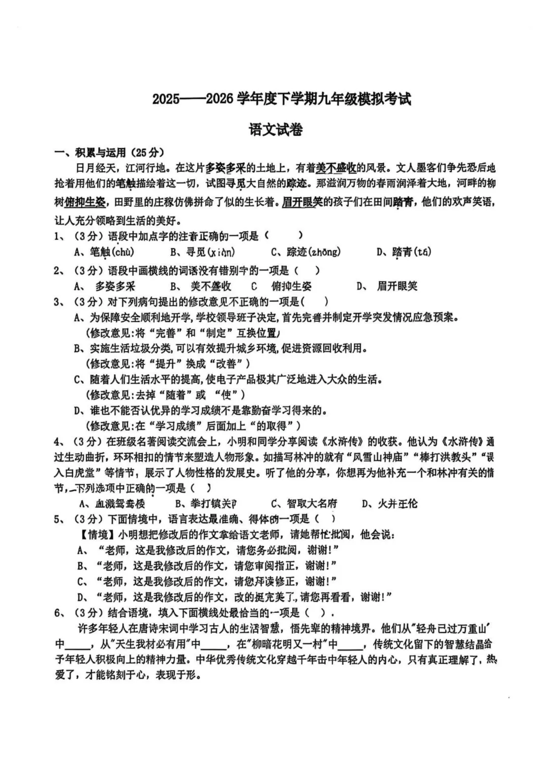 松雷中学九年级校一模试卷+答案【2025-2026】【语文】【高清电子版】