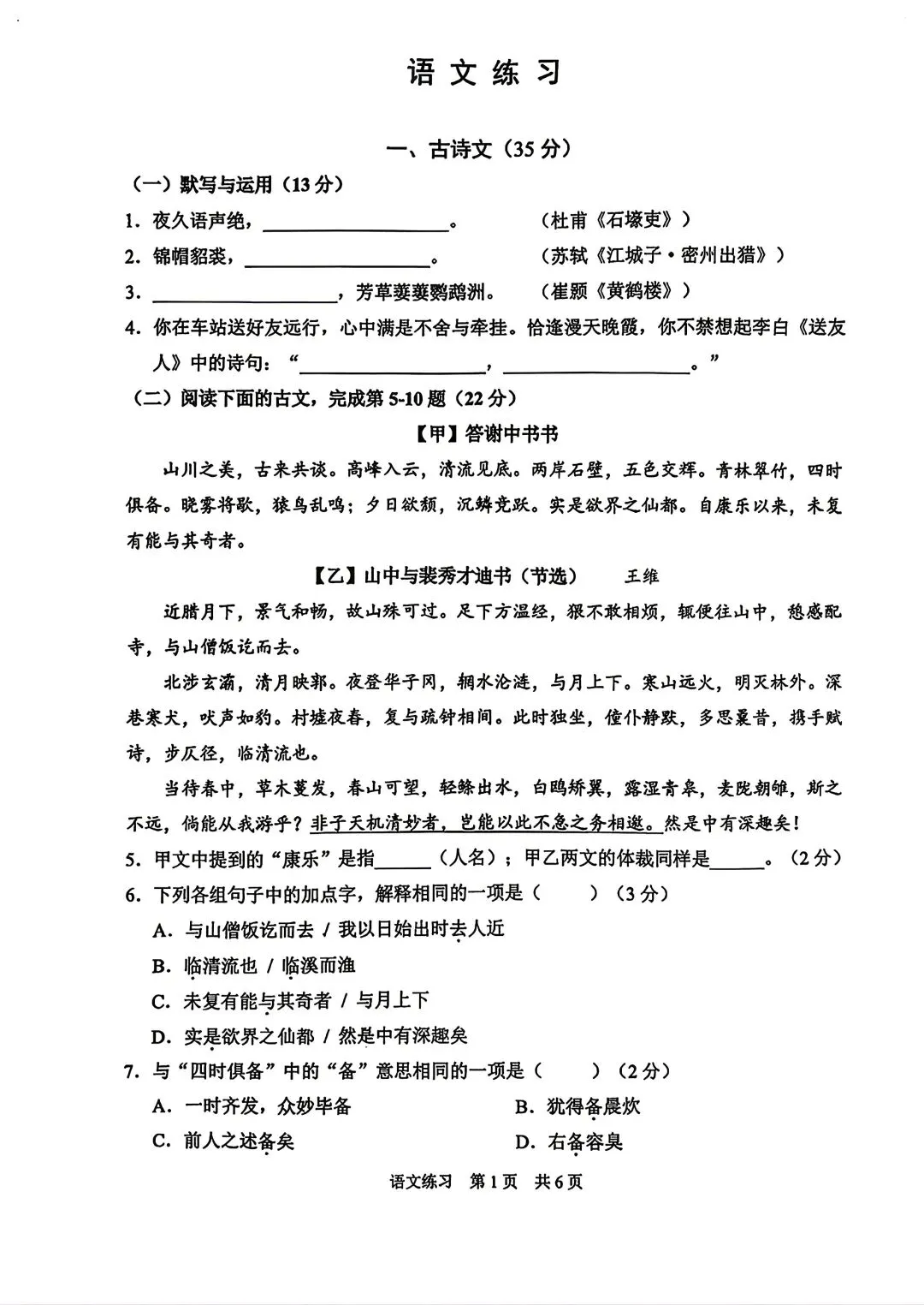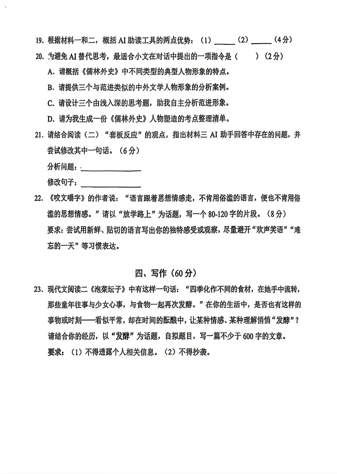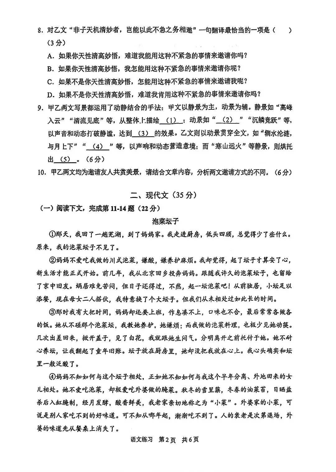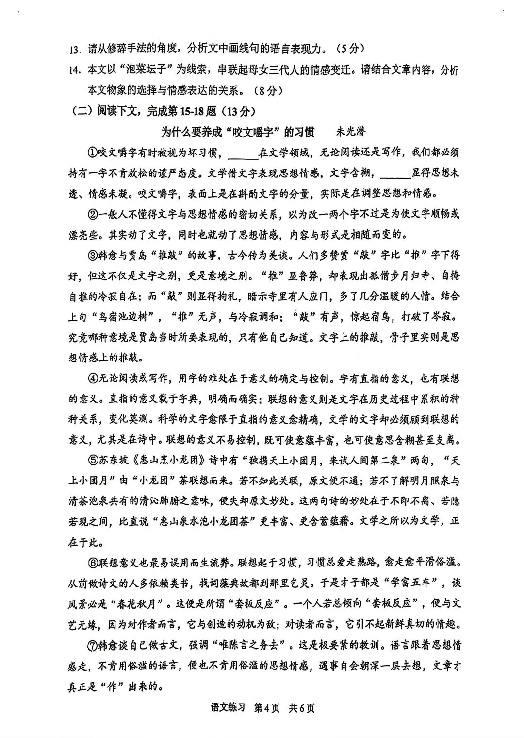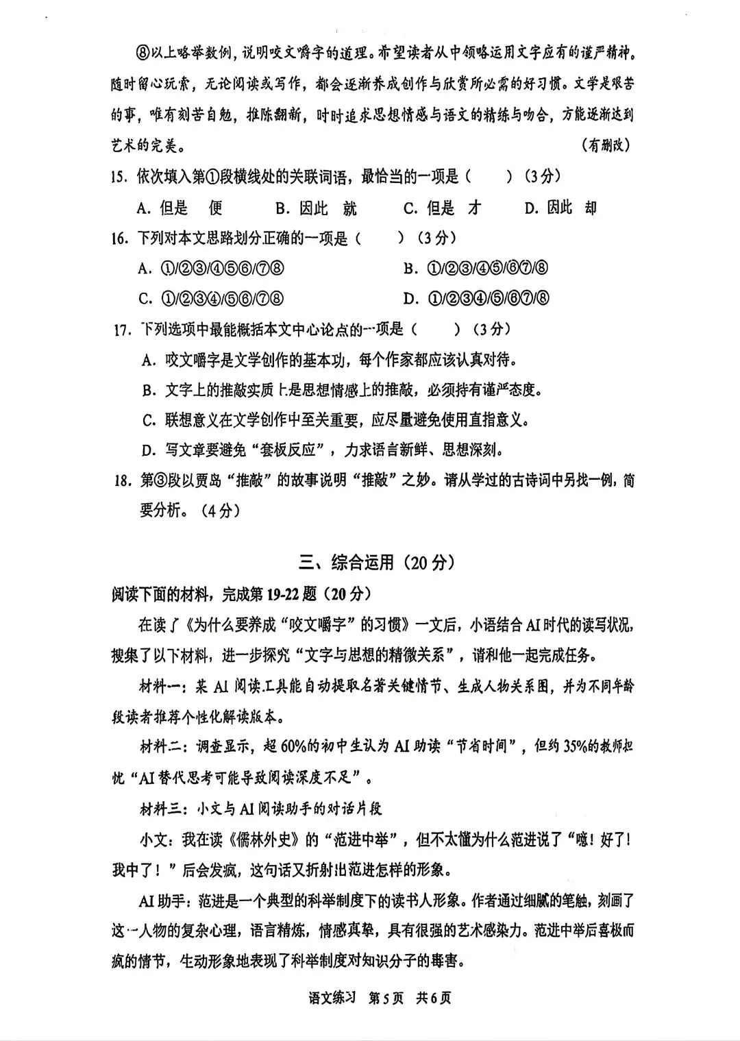 2026静安初三二模语文试卷