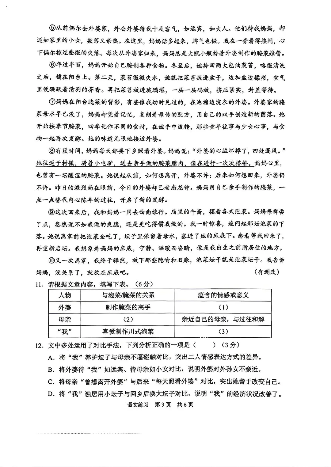 26潍坊二模语文试卷及答案