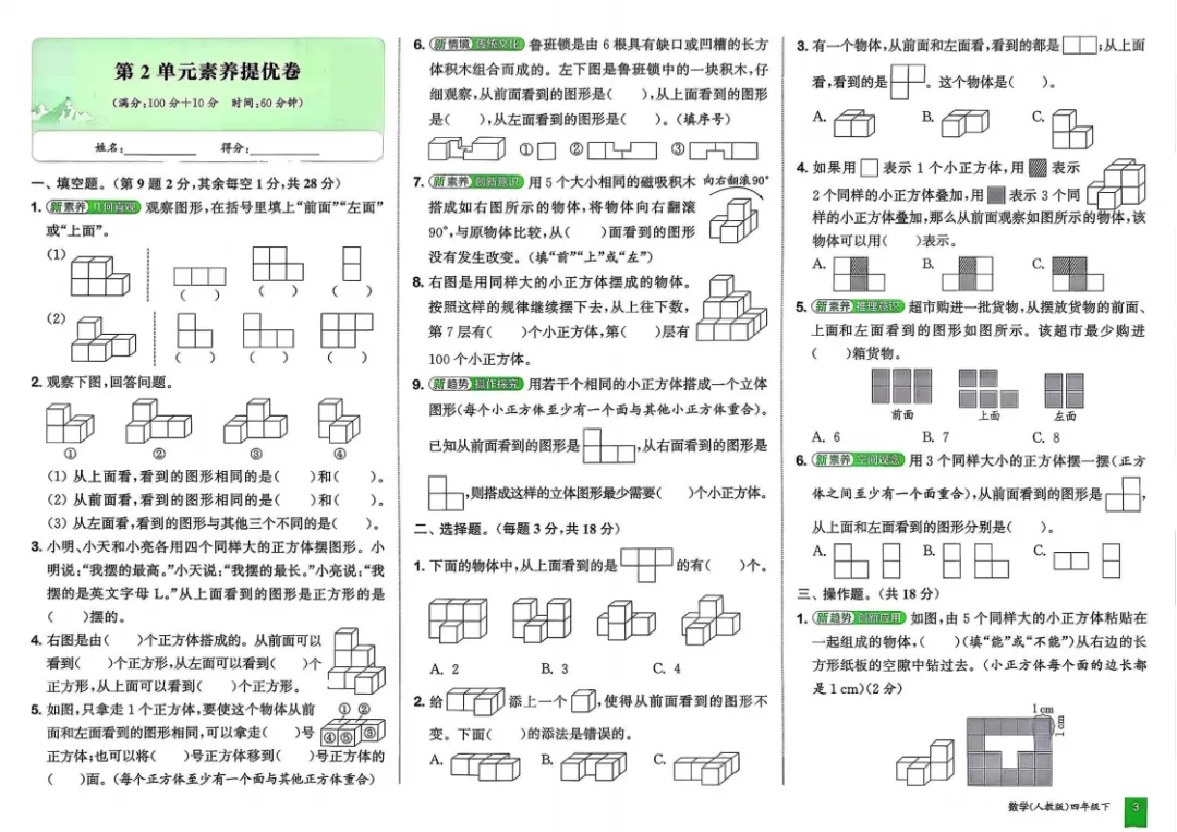 新版四年级下册人教版数学试卷,拔尖测试卷,含1-9单元素养提优卷+期中素养提优卷+期末素养提优卷+期末专项复习卷,附答案,文末可下载