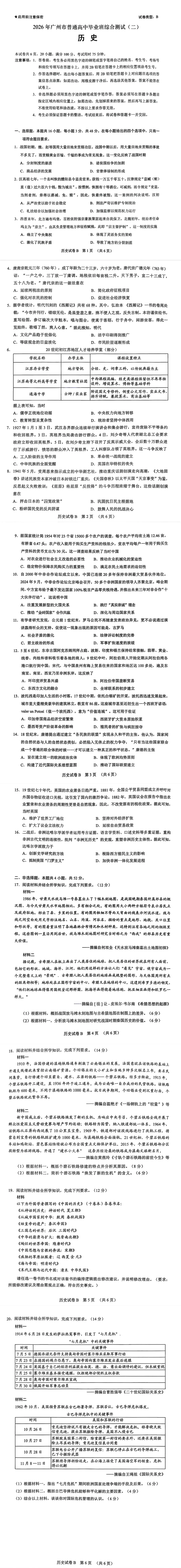 超难!2026广州二模试题+答案出炉!附:参考答案