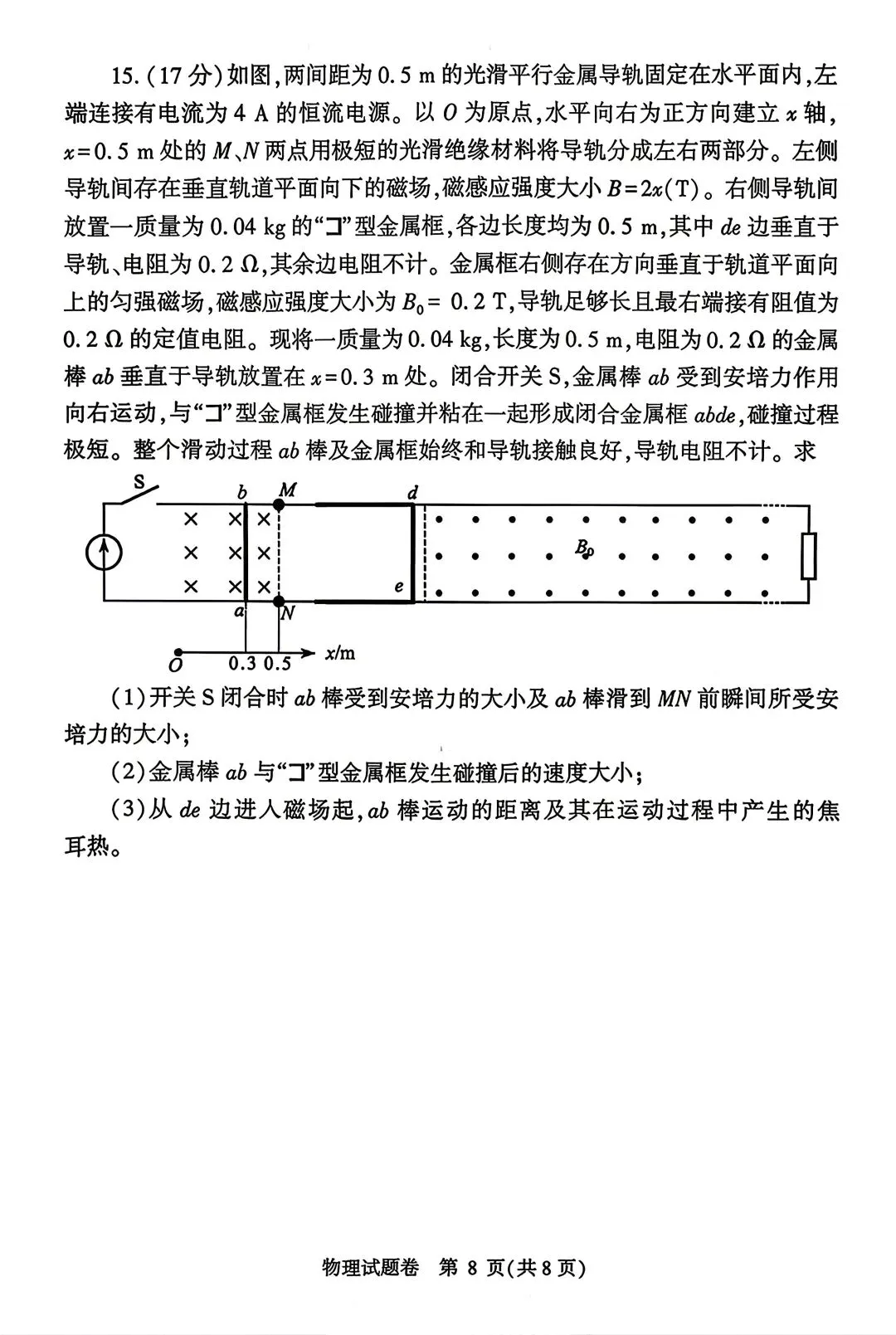 四川省绵阳市2026届高三第三次诊断考试·物理试卷
