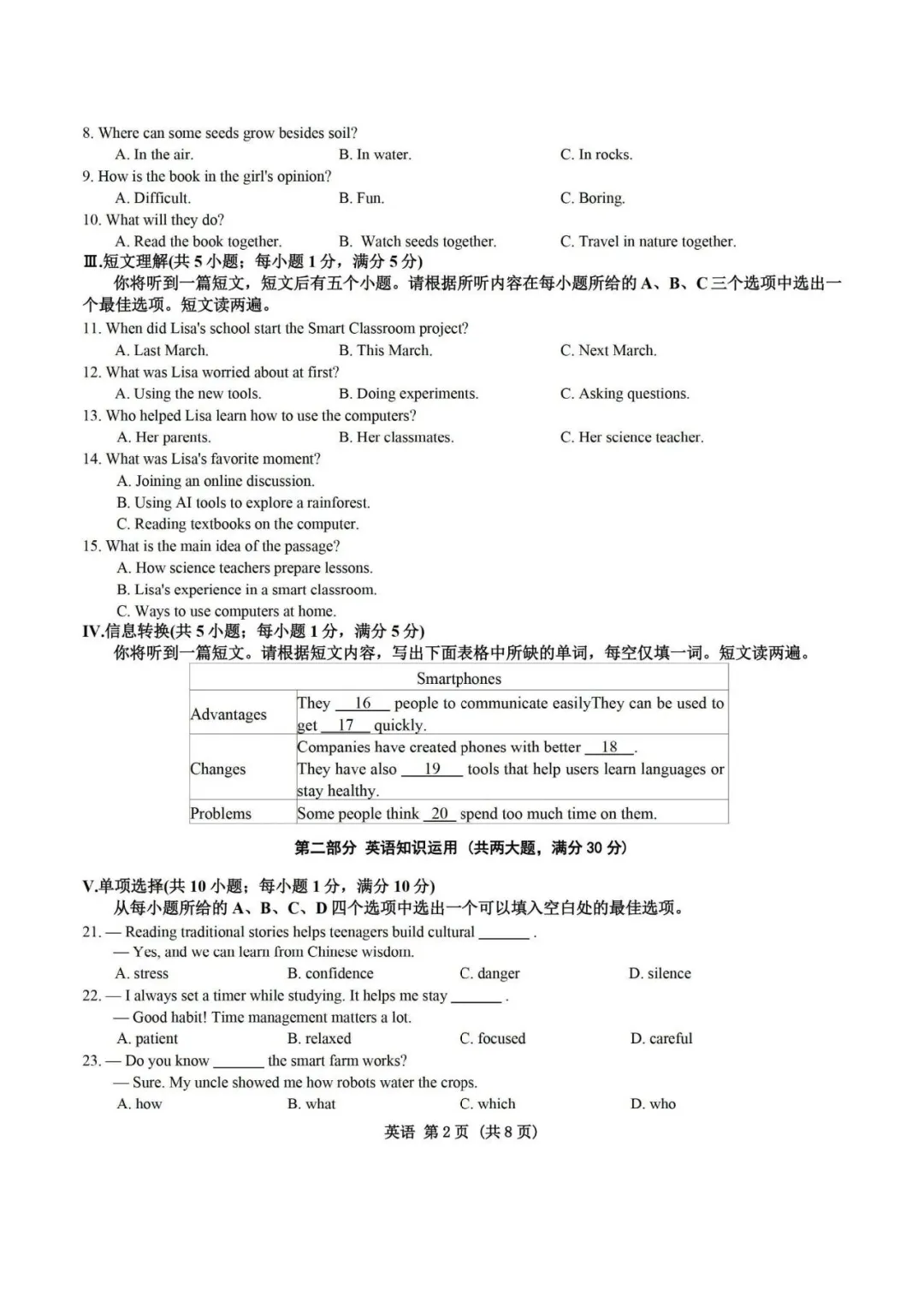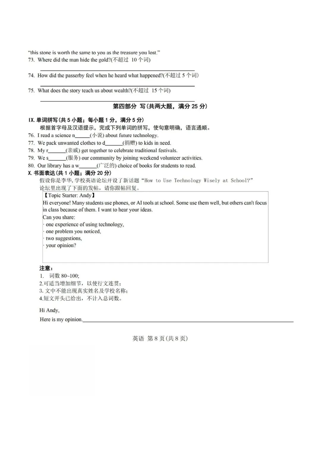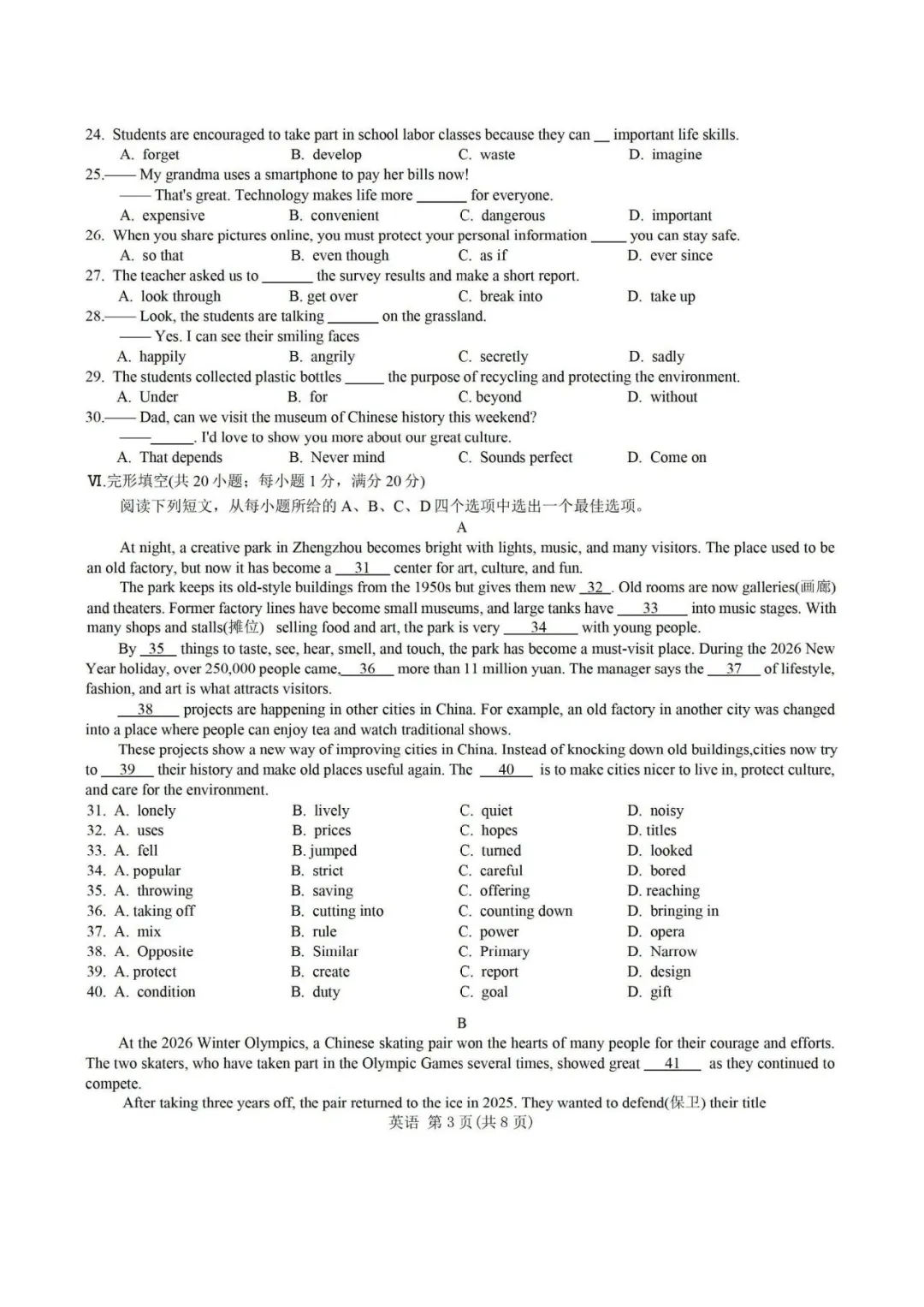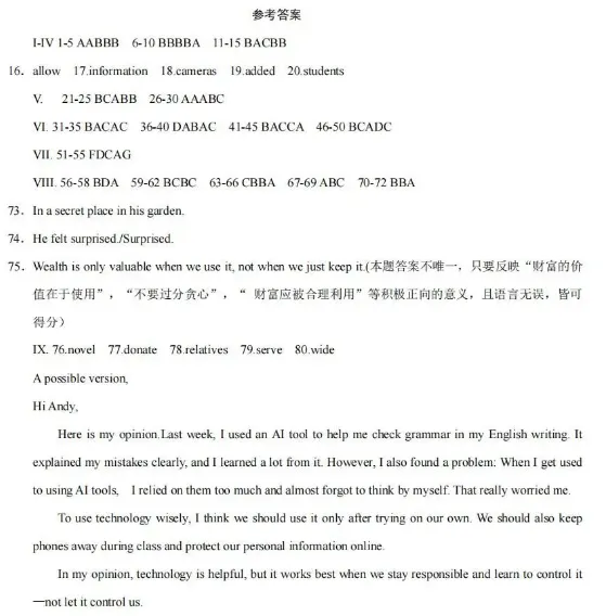 26年合肥蜀山区一模英语试卷+答案