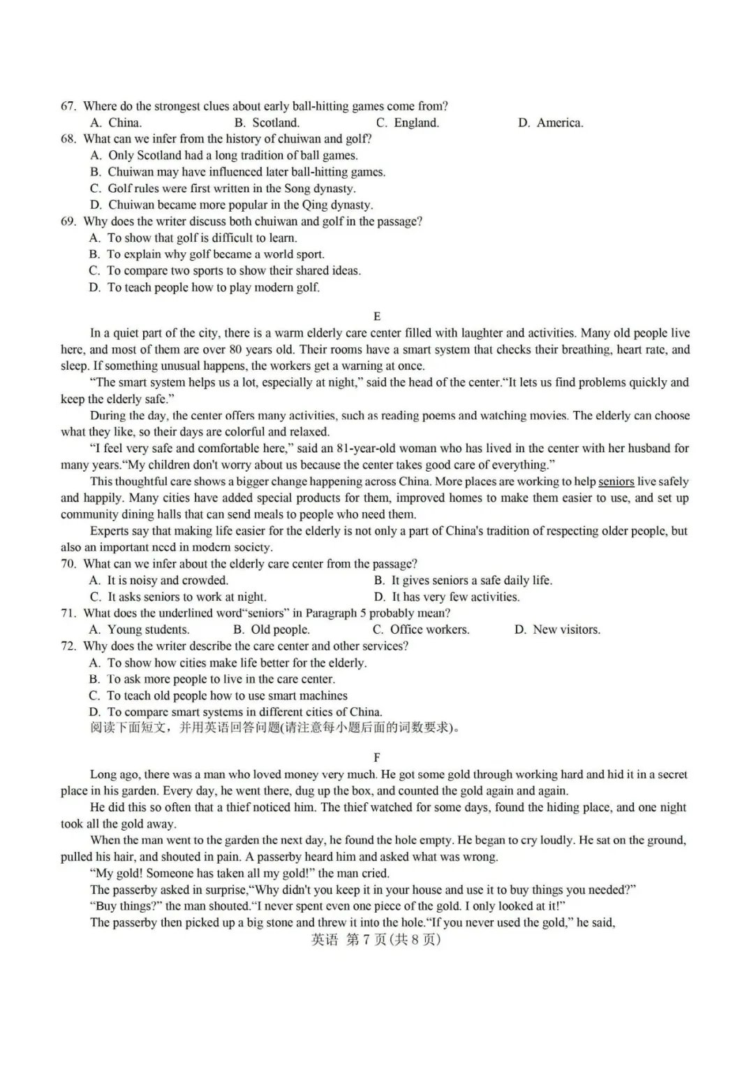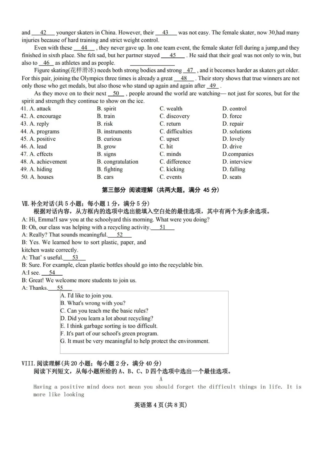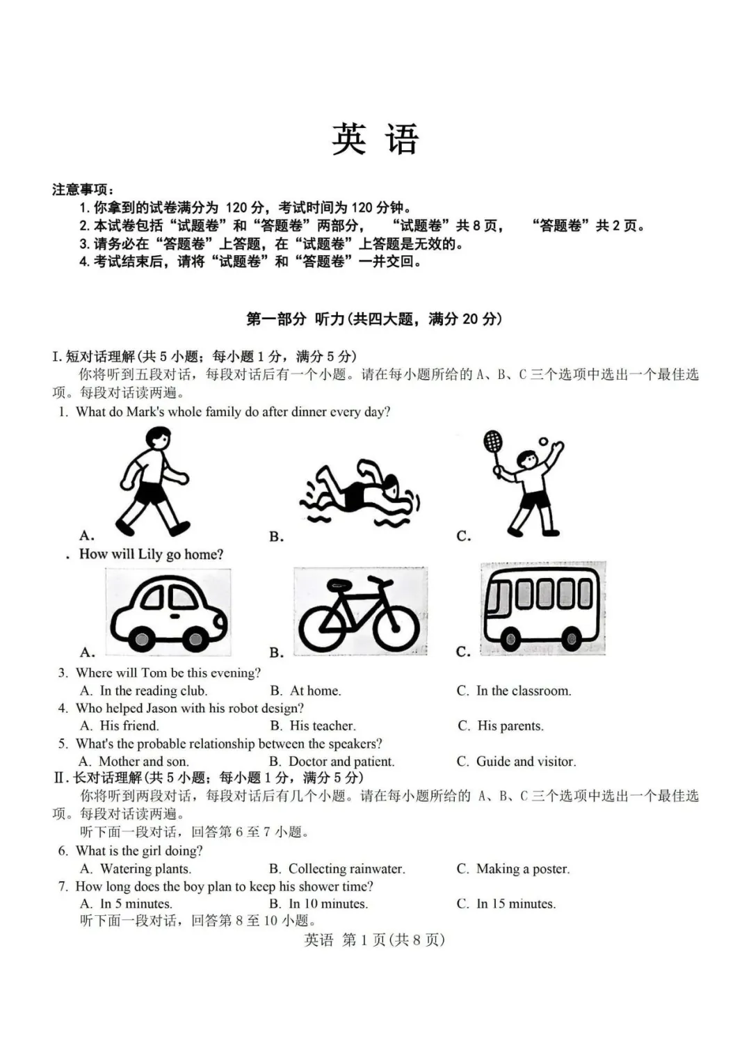 26年合肥蜀山区一模英语试卷+答案