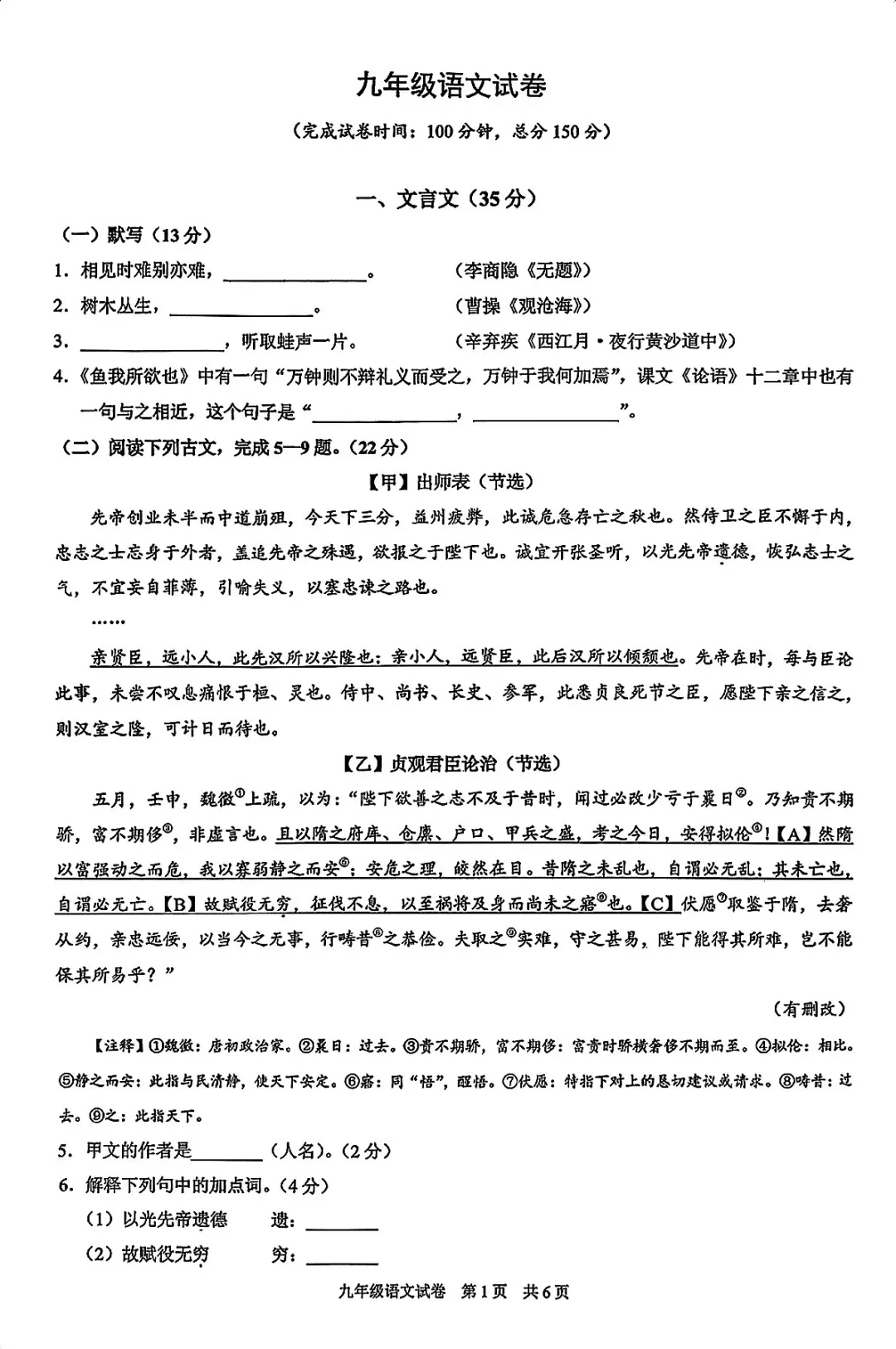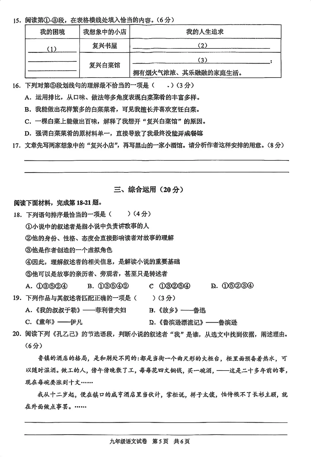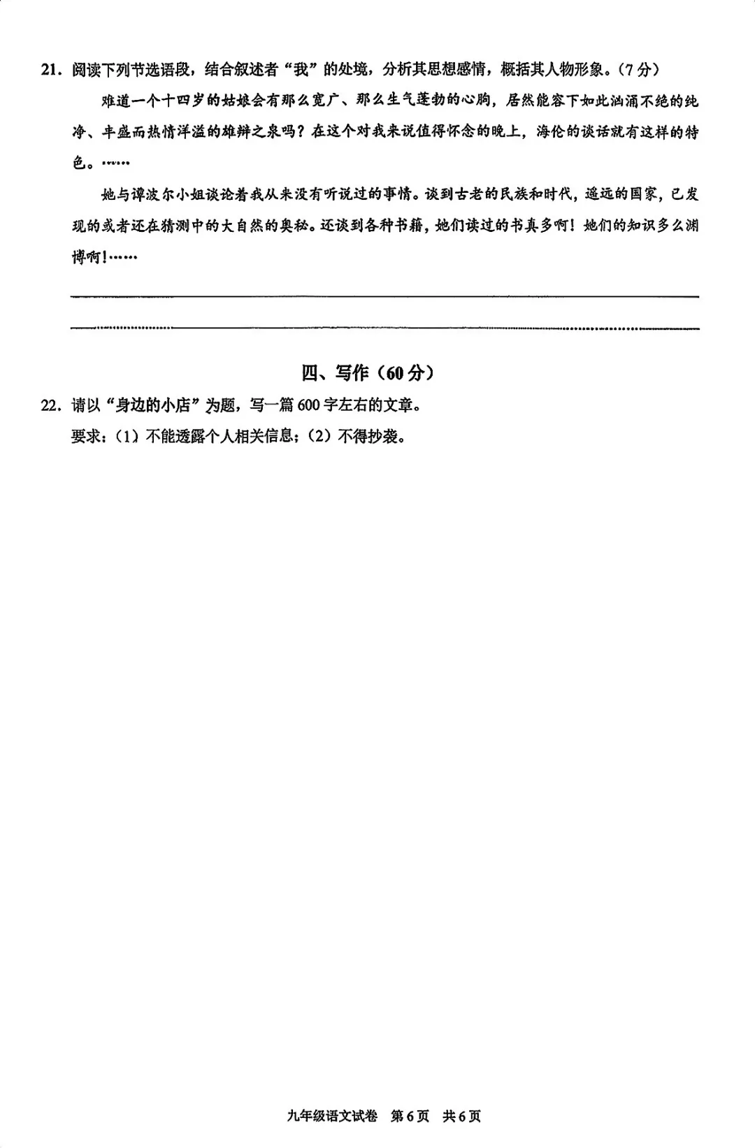 2026上海【黄浦区】初三二模语文试卷含答案解析(不断更新)命题作文:《身边的小店》