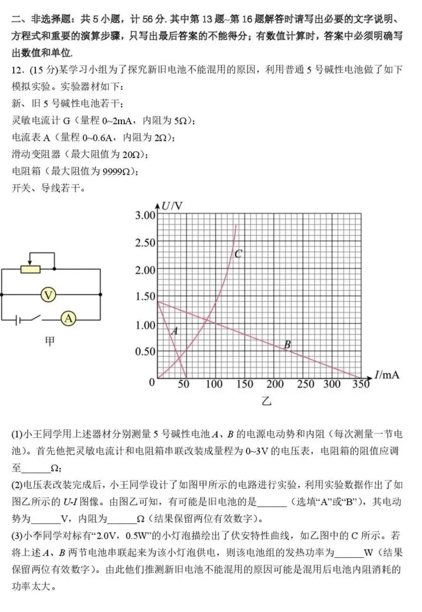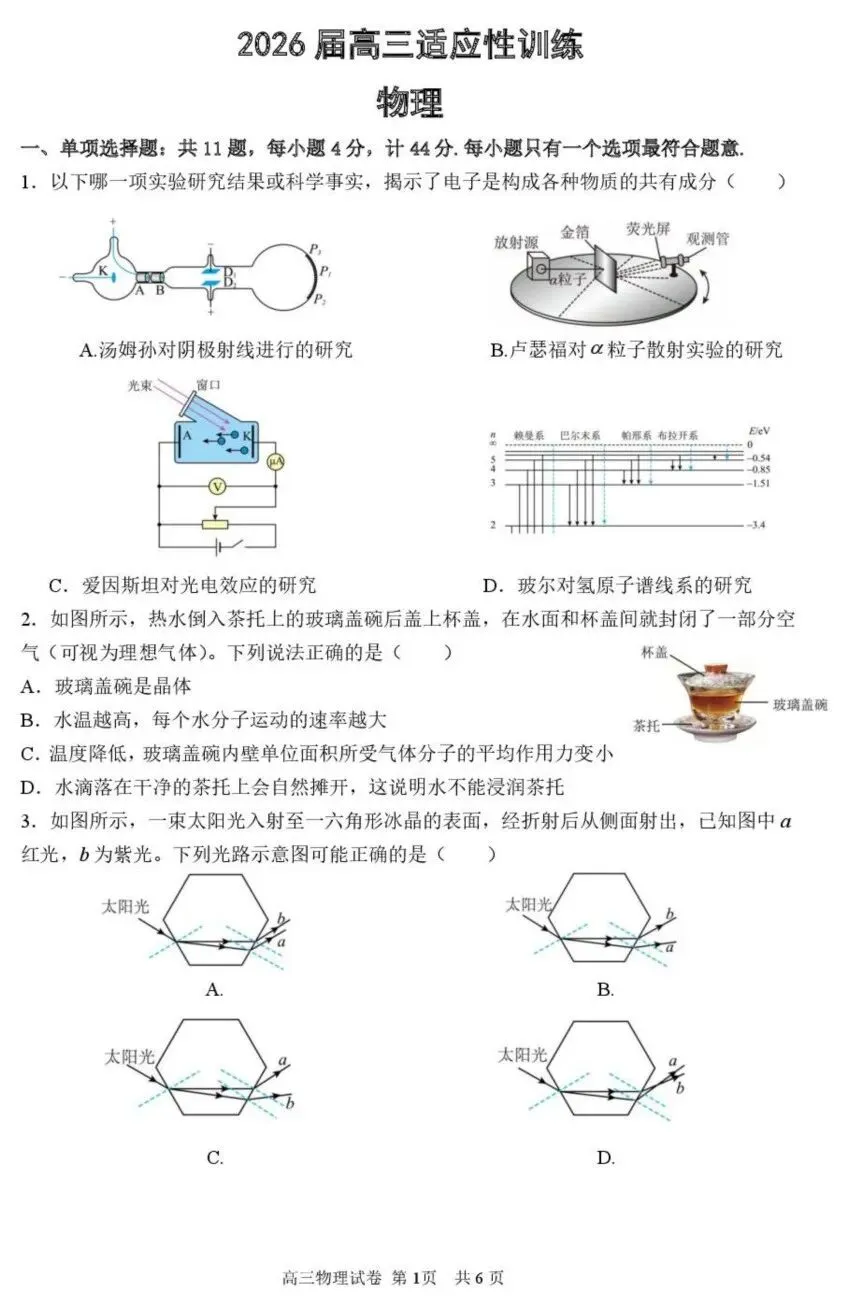 2026届江苏省镇江一中等校高三下学期适应性训练物理试题及答案