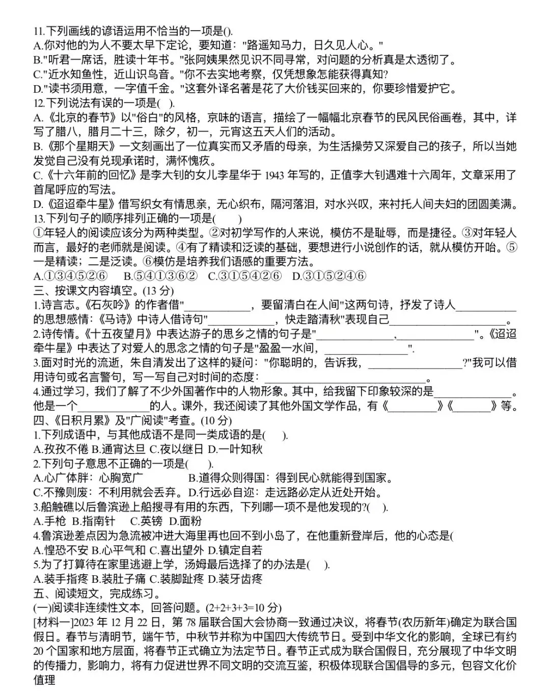 D.有些名著不通俗易懂,遇到阅读有困难的句段或章节,可以略去不读。