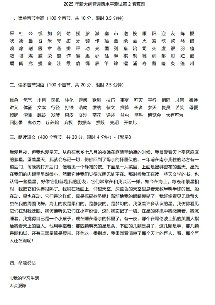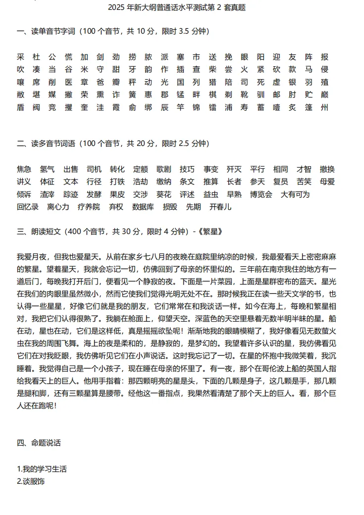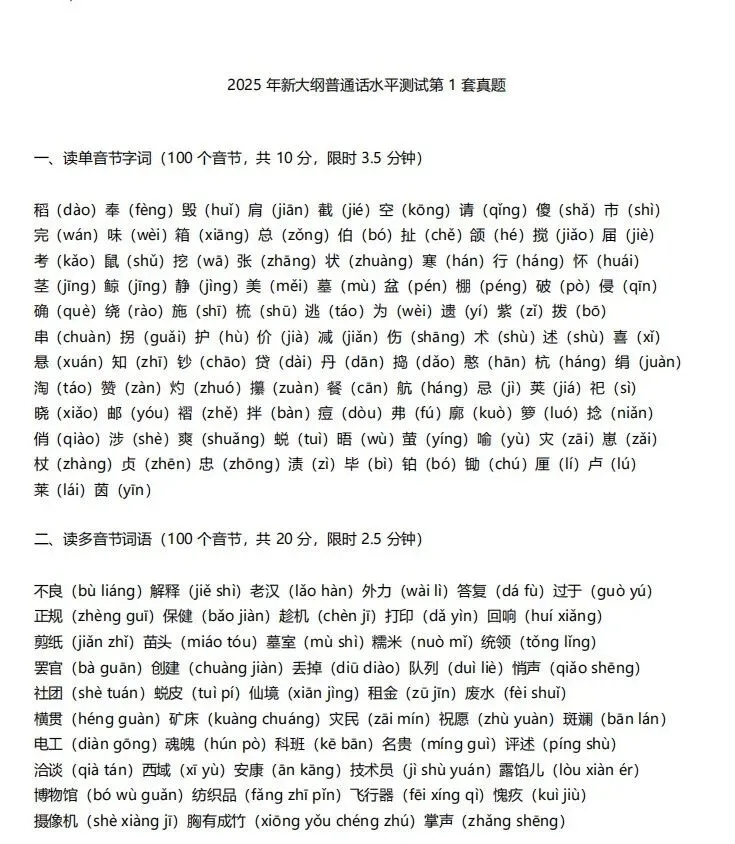 本次整理的真题,紧扣普通话水平测试大纲,覆盖全题型: