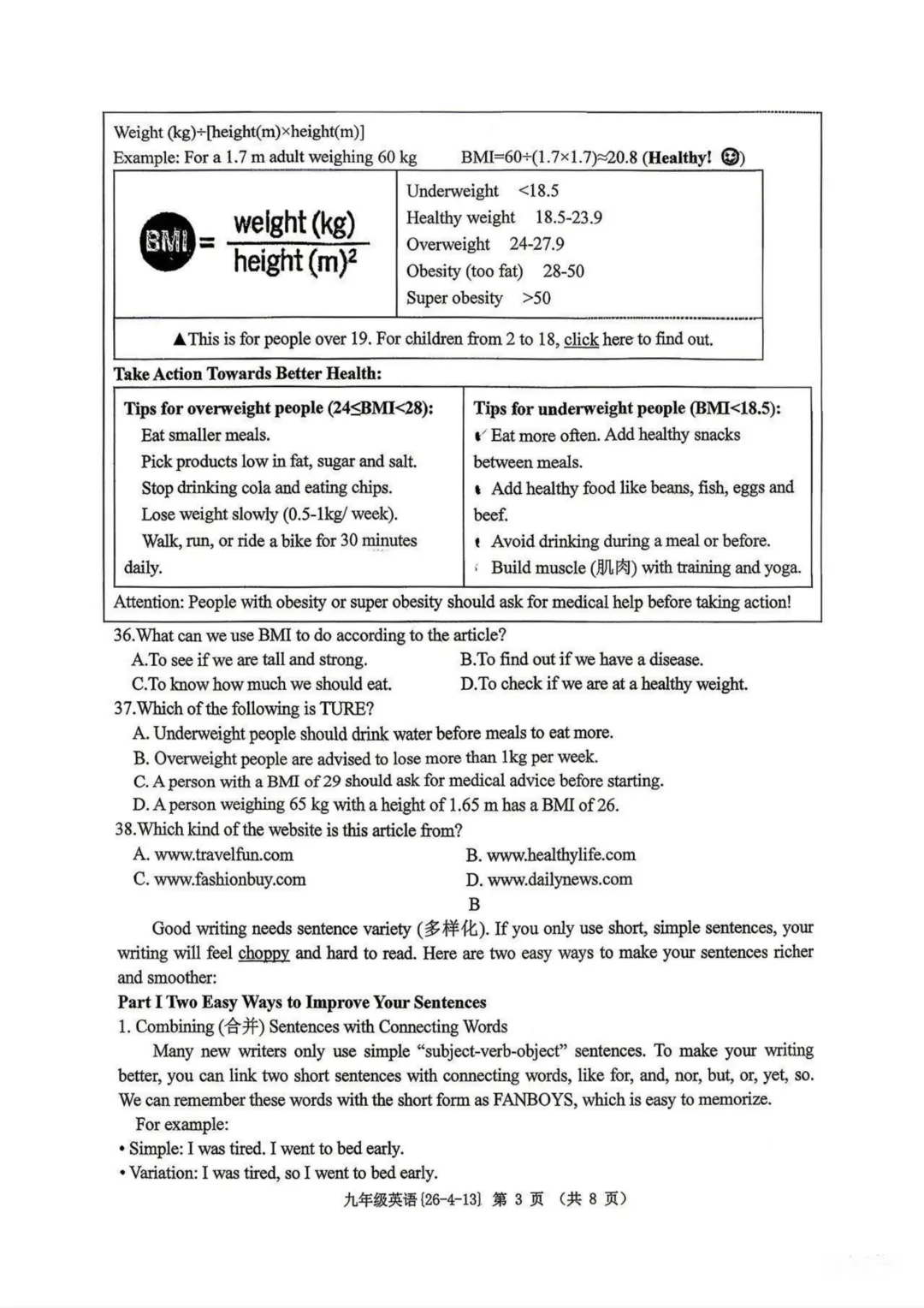 2026年中考百校联考(二)英语试卷&答案【含听力】