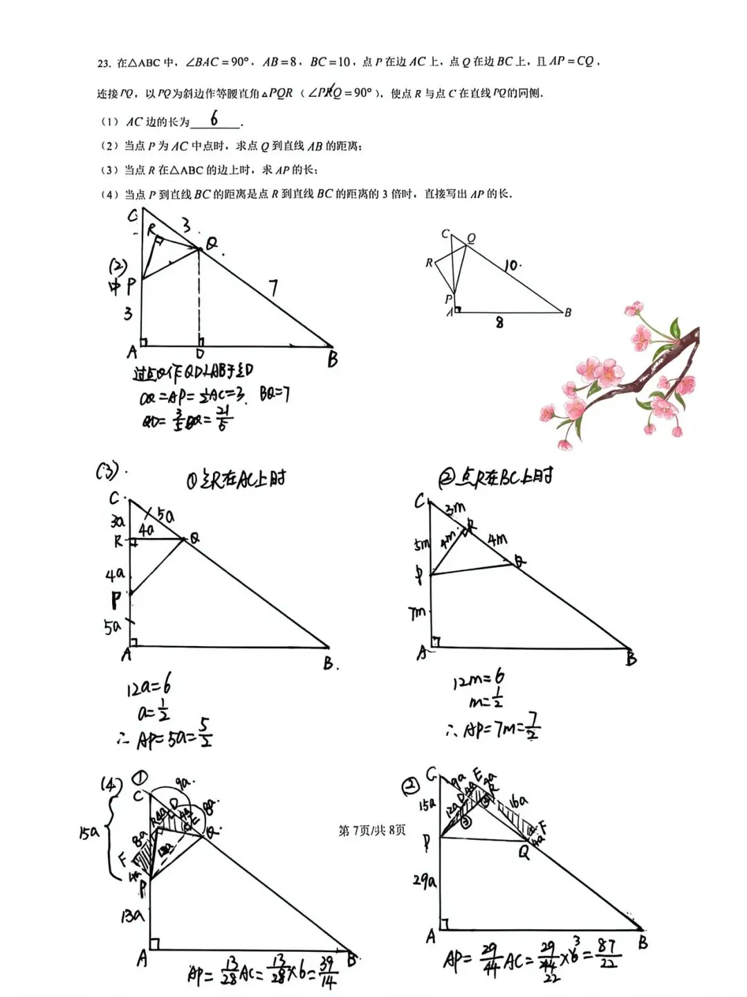 >2026.4北湖九下数学阶段测试一试卷及22~24题解析(手写版)