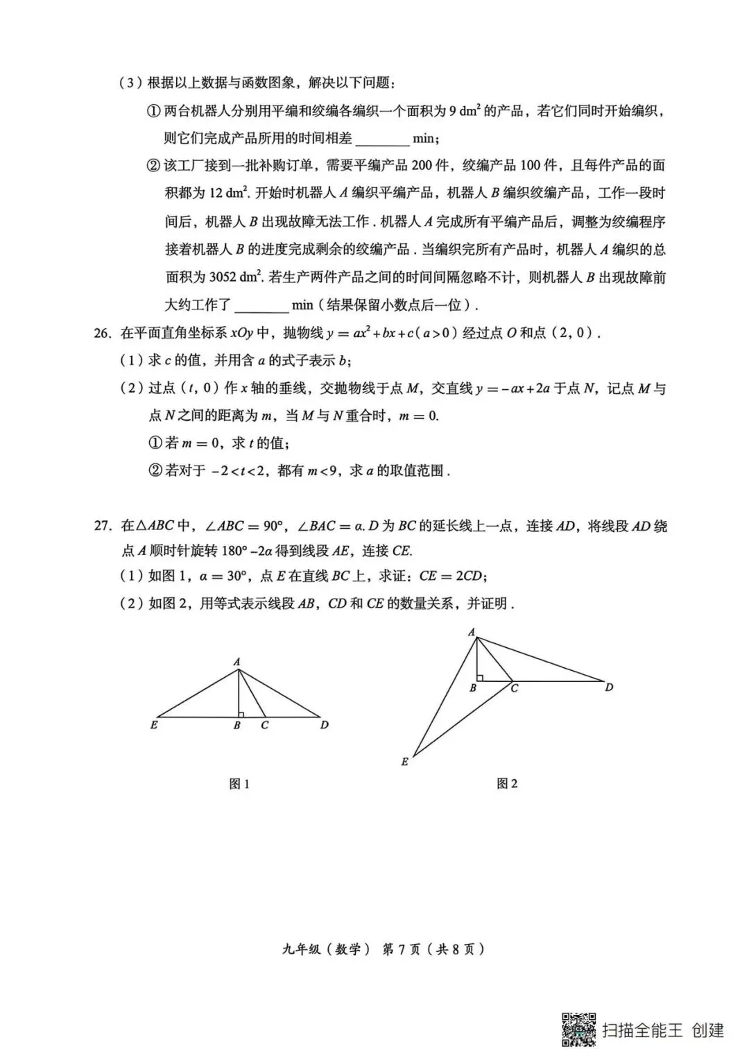 2026.4北湖九下数学阶段测试一试卷及22~24题解析(手写版)