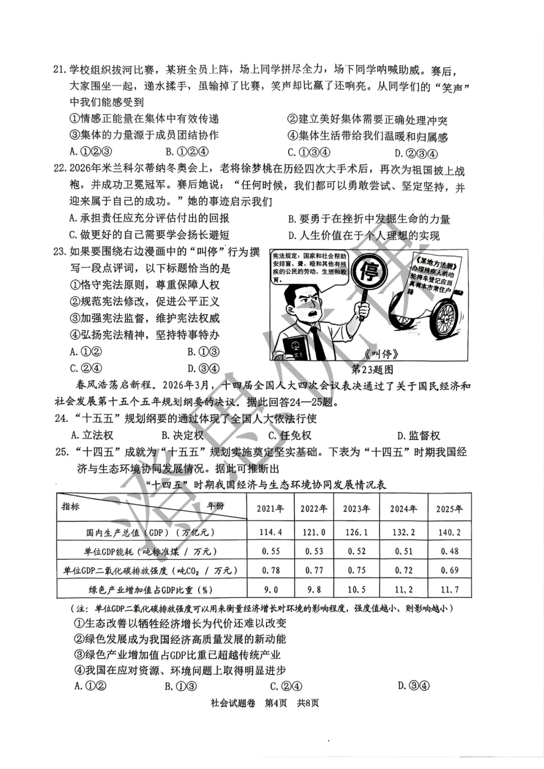 浙江省湖州市浙北2026年4月中考一模试卷(社会)