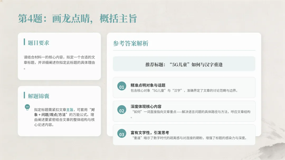 4. 标题:“5G儿童”如何与汉字重逢(1分)
