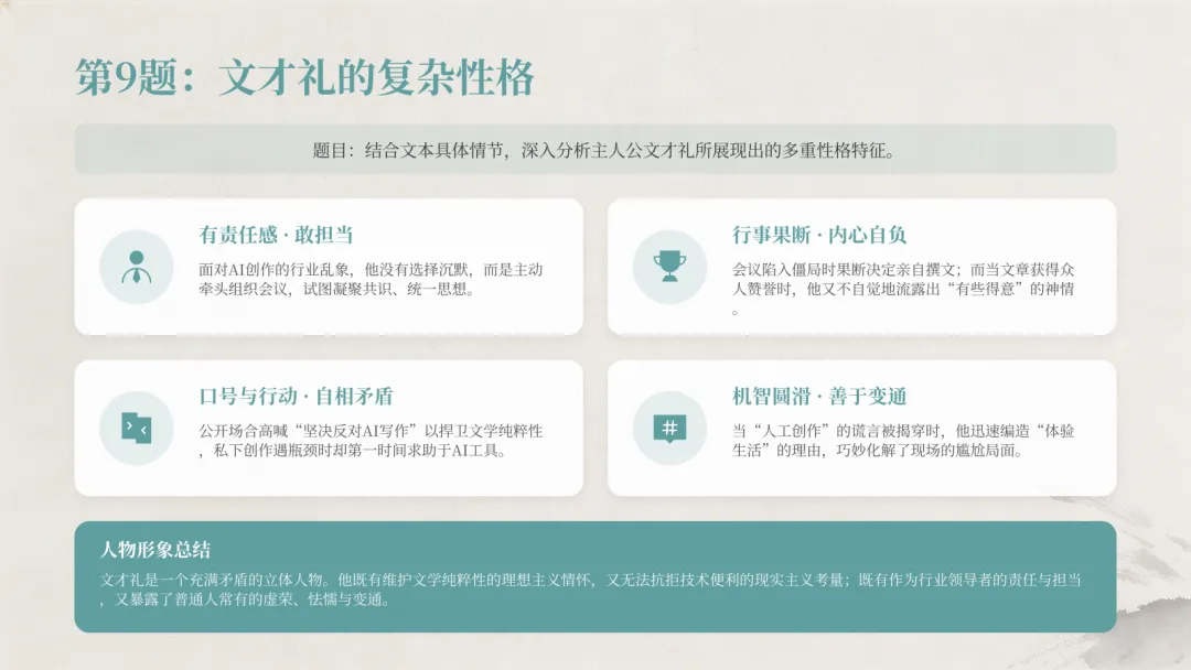 AI的分析文字在对话框内翻滚,不到半分钟,一篇有理有据、文采斐然的论述性文章出现在屏幕上。文才礼通读一遍后拍案叫绝:“这AI,真厉害!”