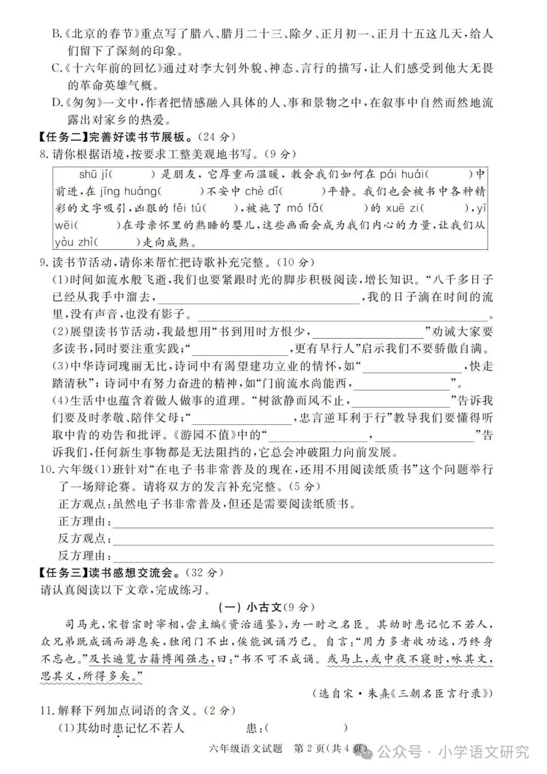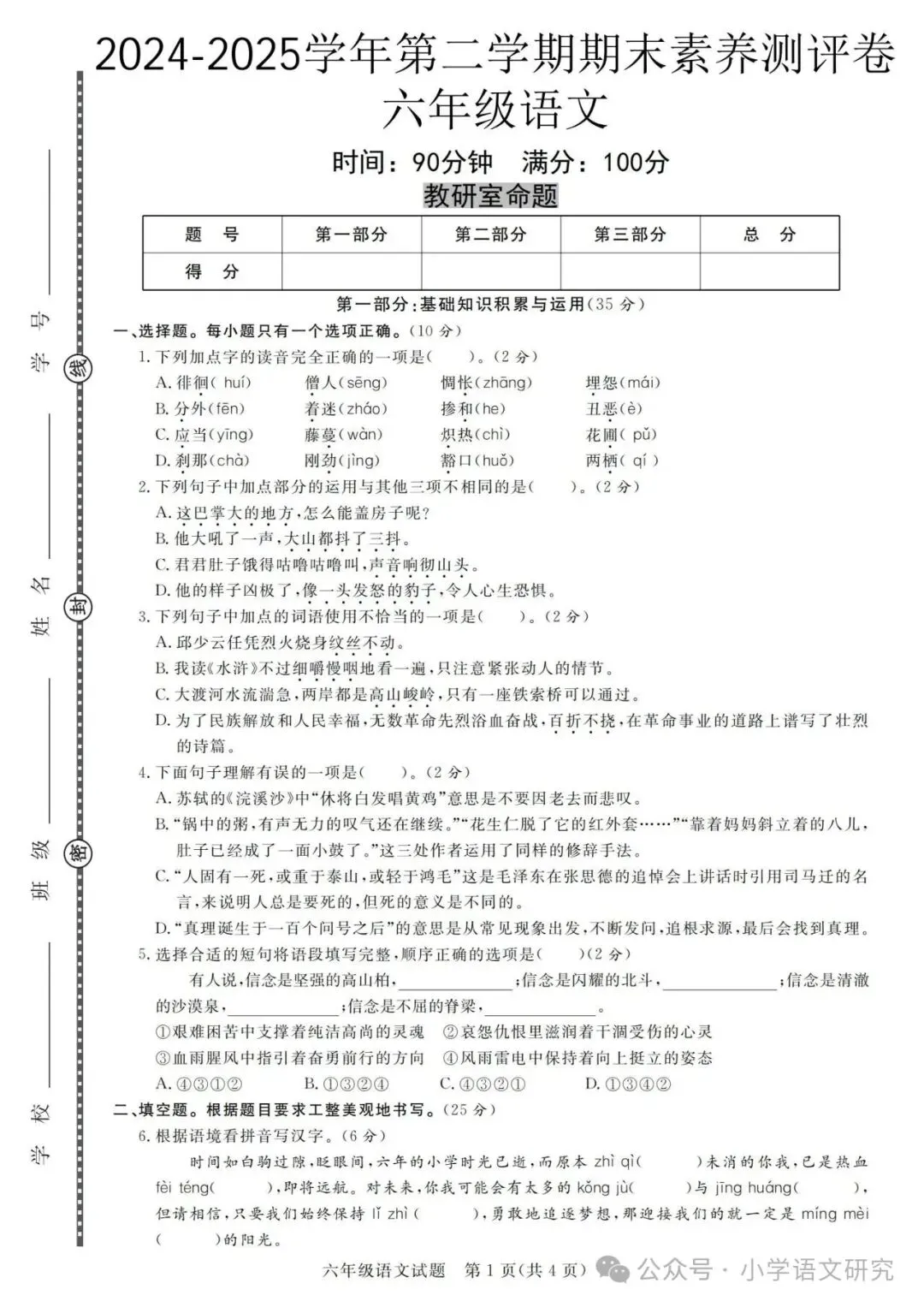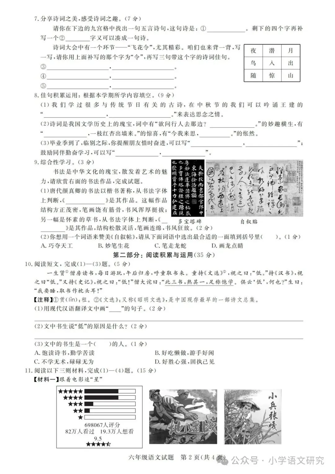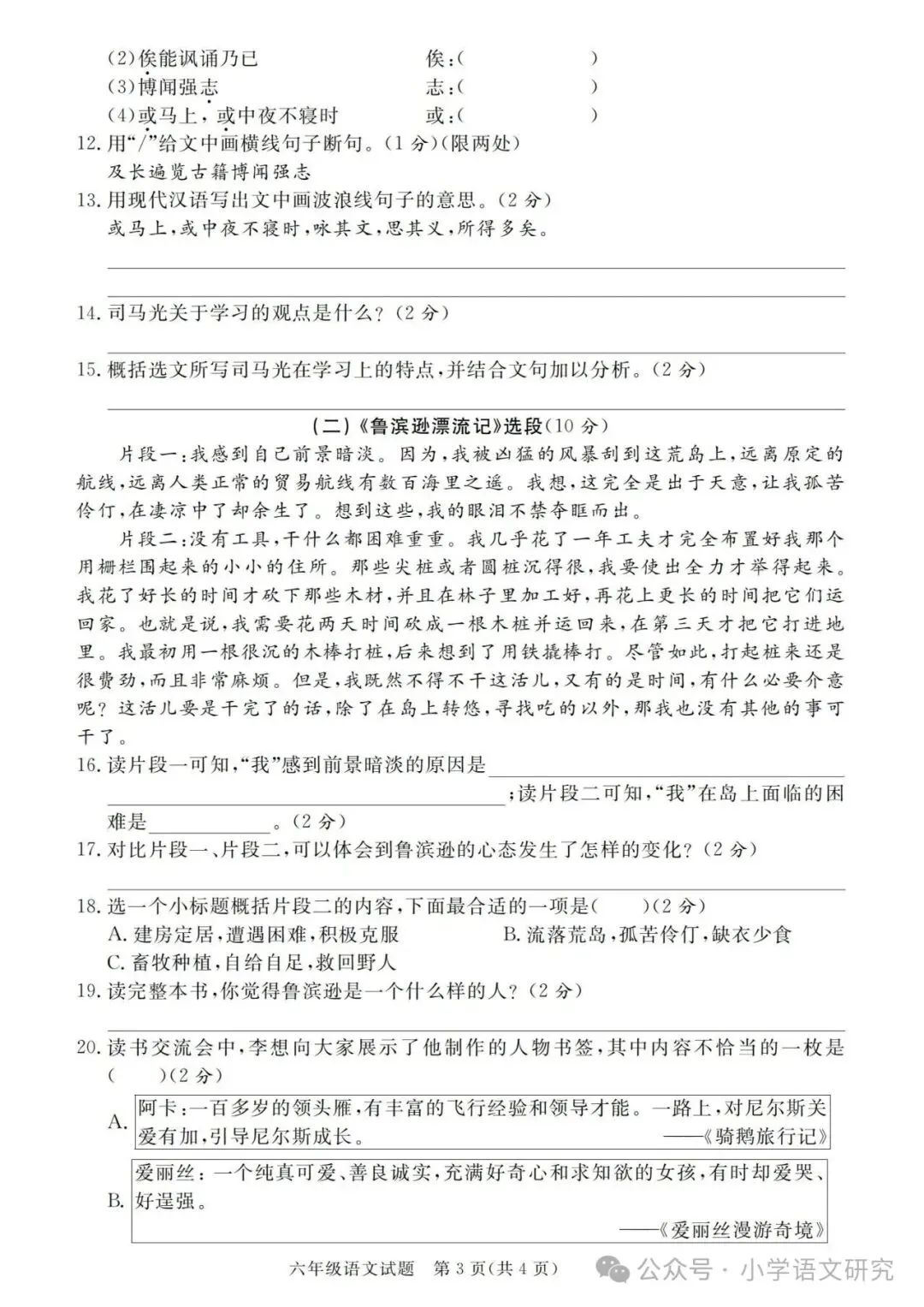 >六年级语文《小升初模拟试卷7套》含答案丨可下载