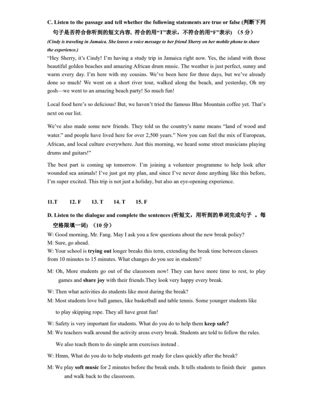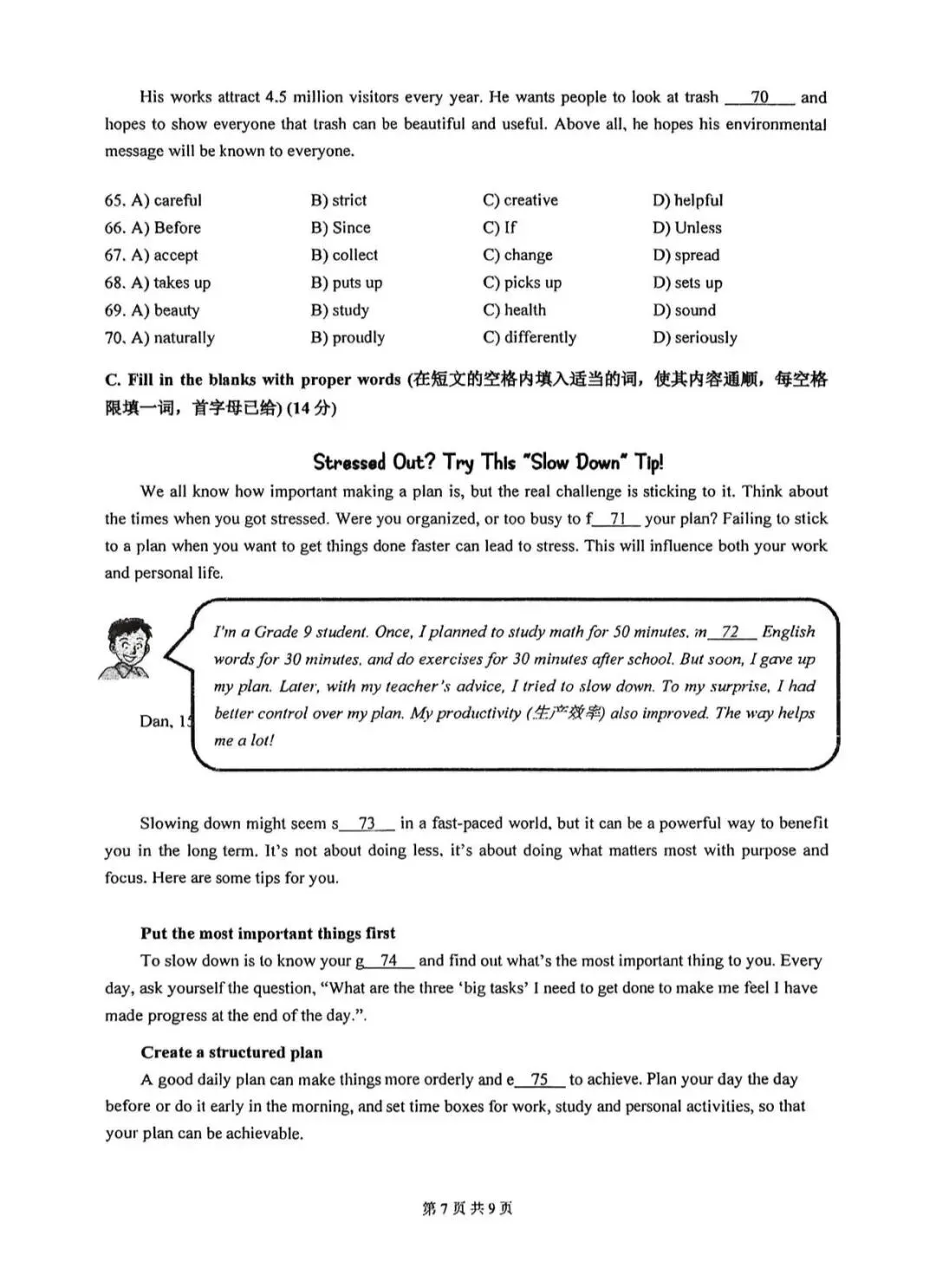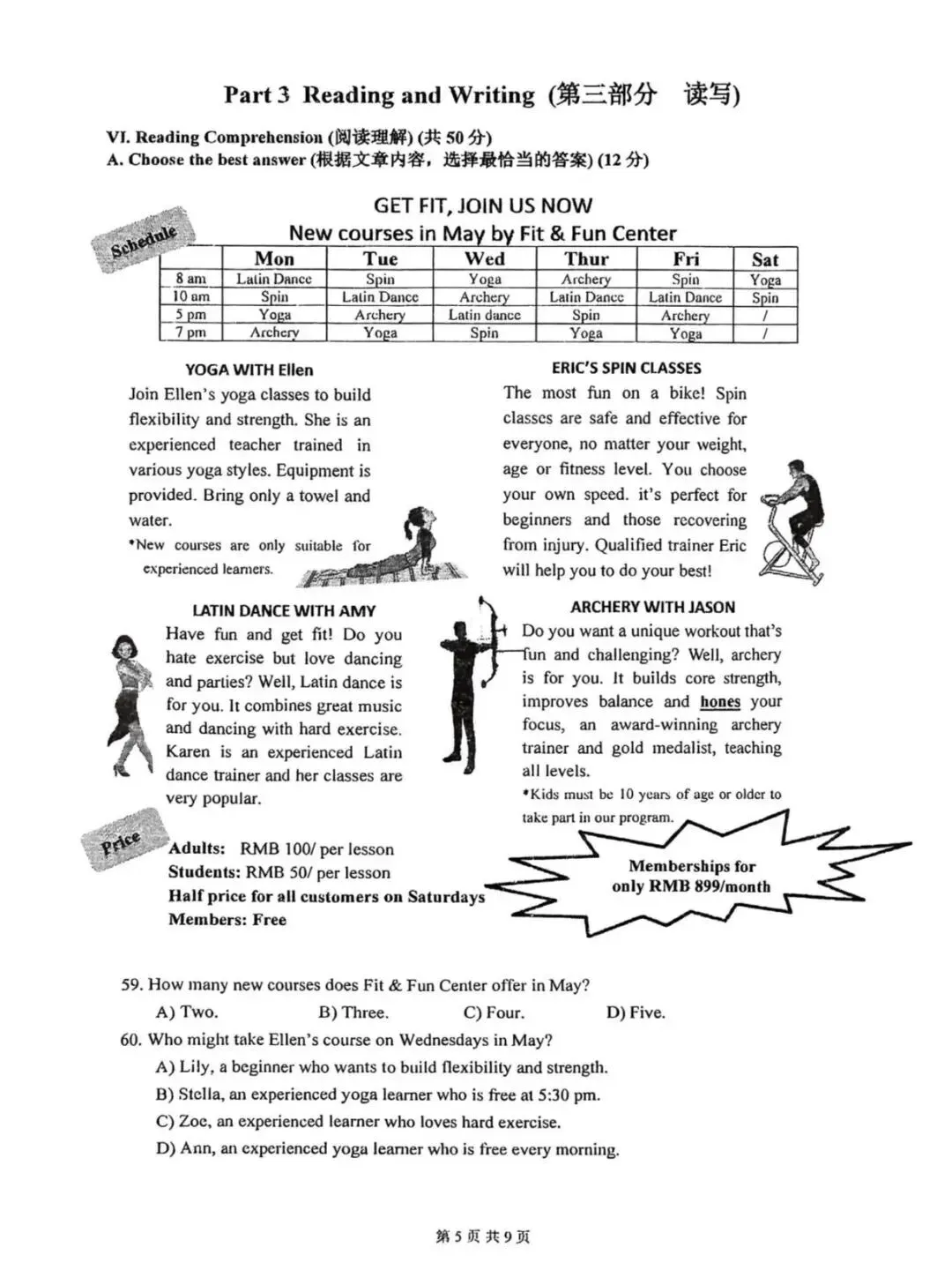 2026嘉定区初三英语二模试卷及答案