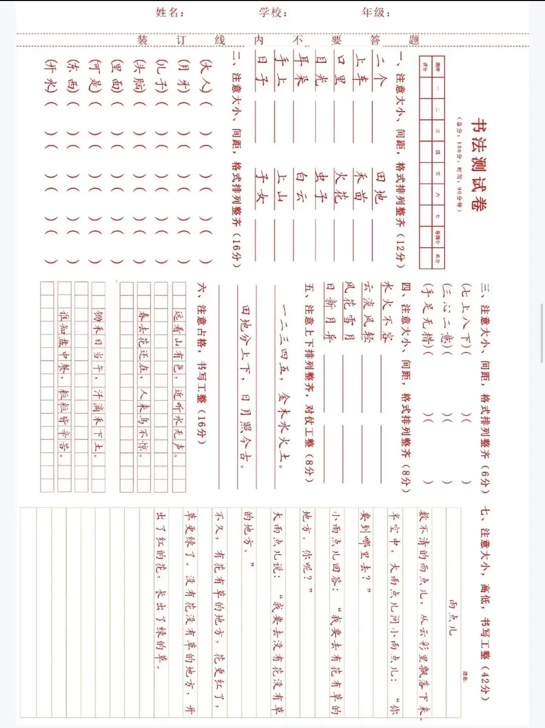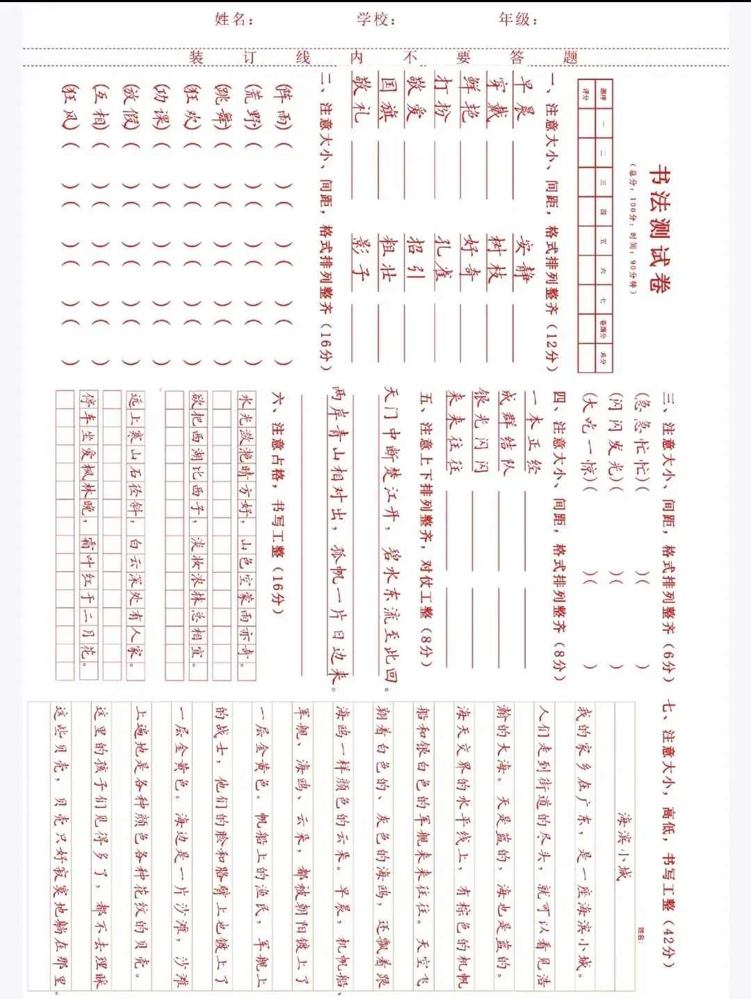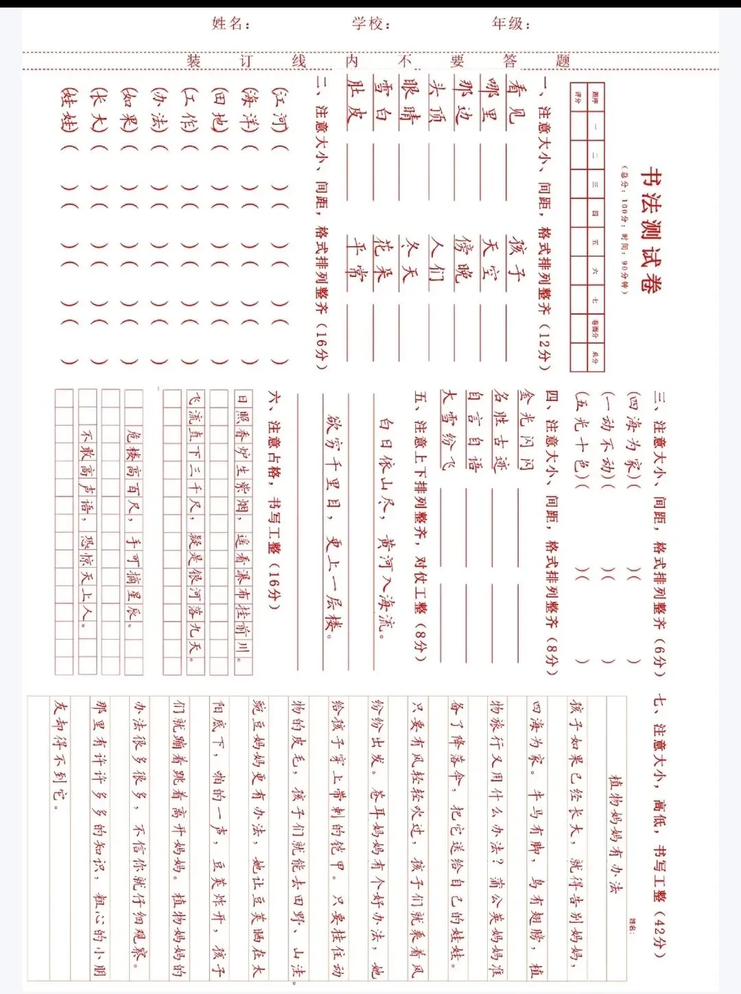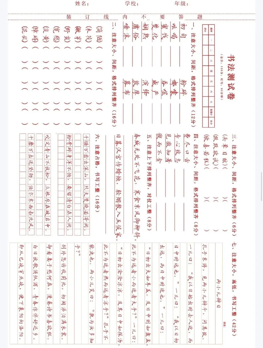 书法试卷,测试题.