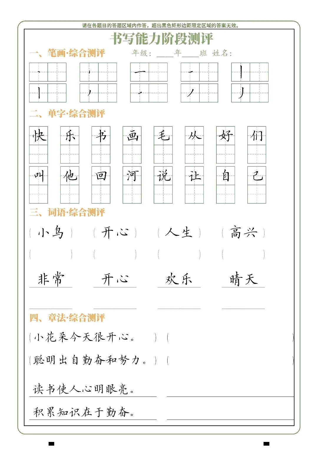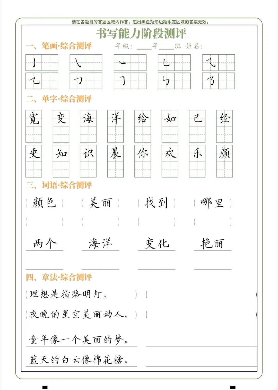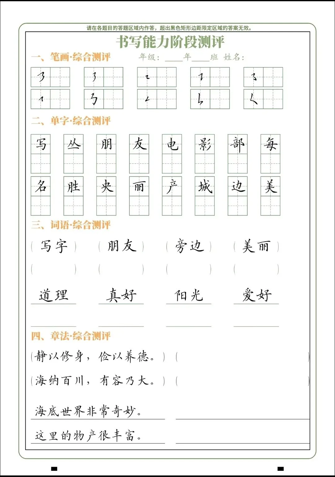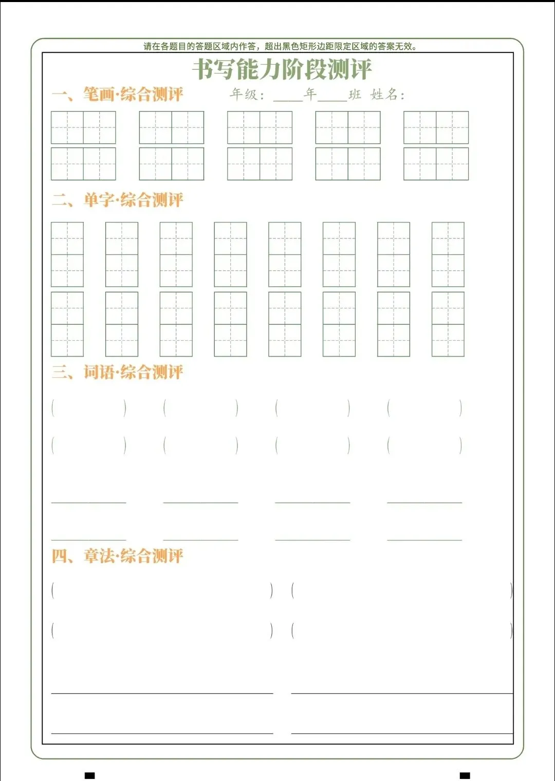 书法试卷,测试题.