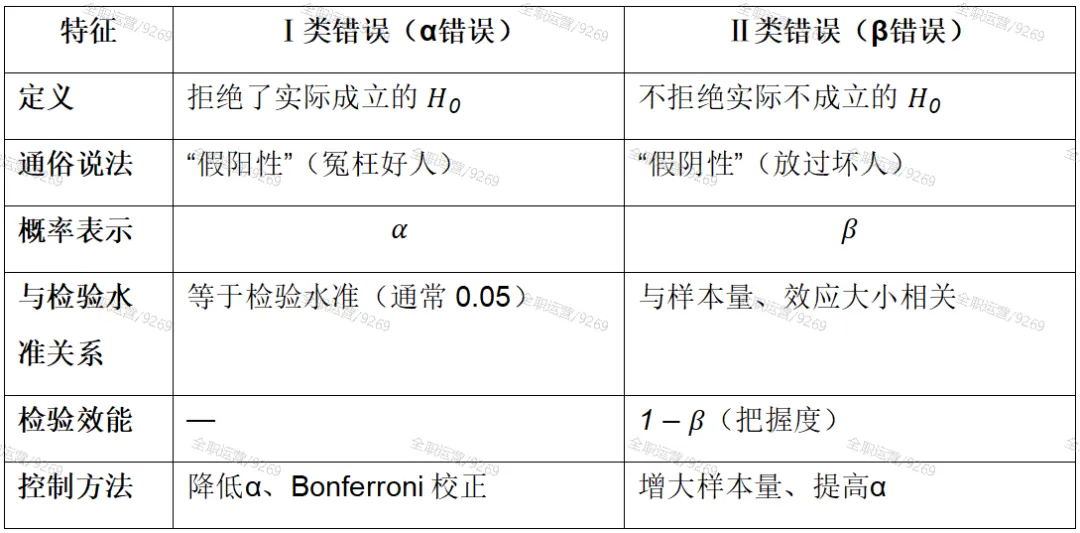 Ⅰ类错误定义:拒绝了实际成立的 H0(假阳性)。
