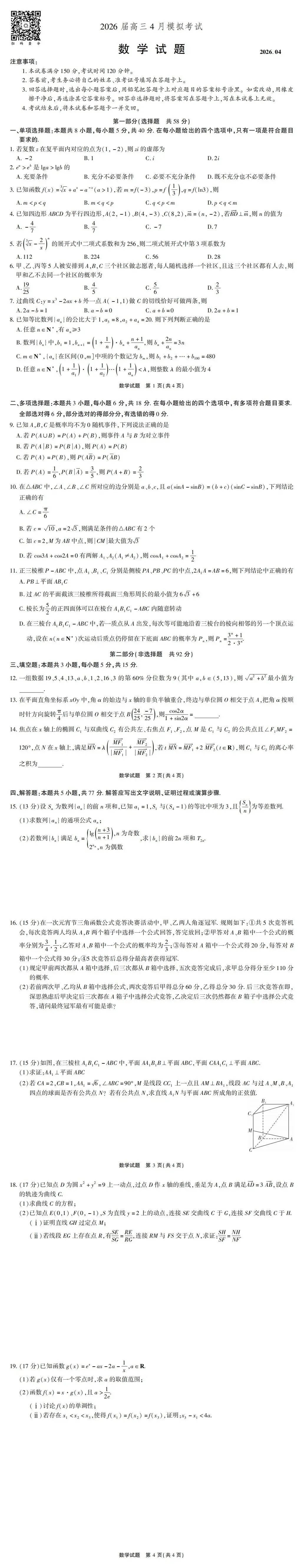 2026年沈阳市一模【数学】试卷分享!!沈河、皇姑、铁西,持续更新中~~