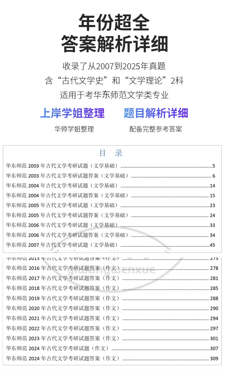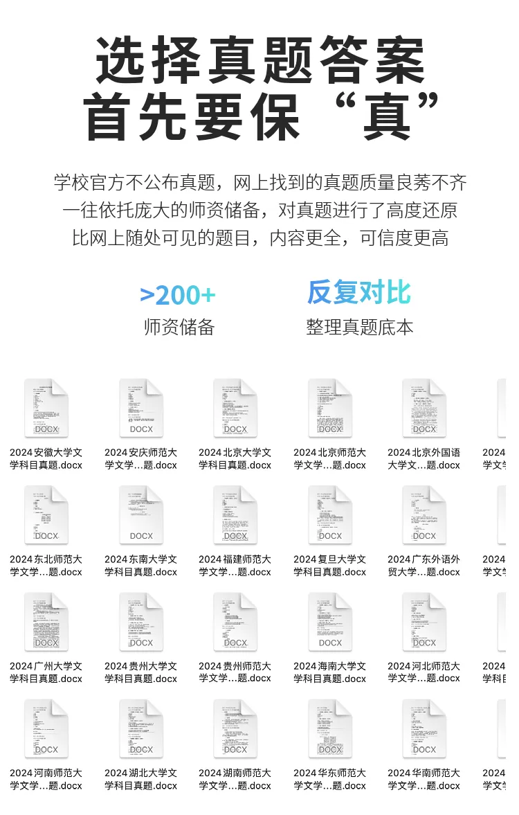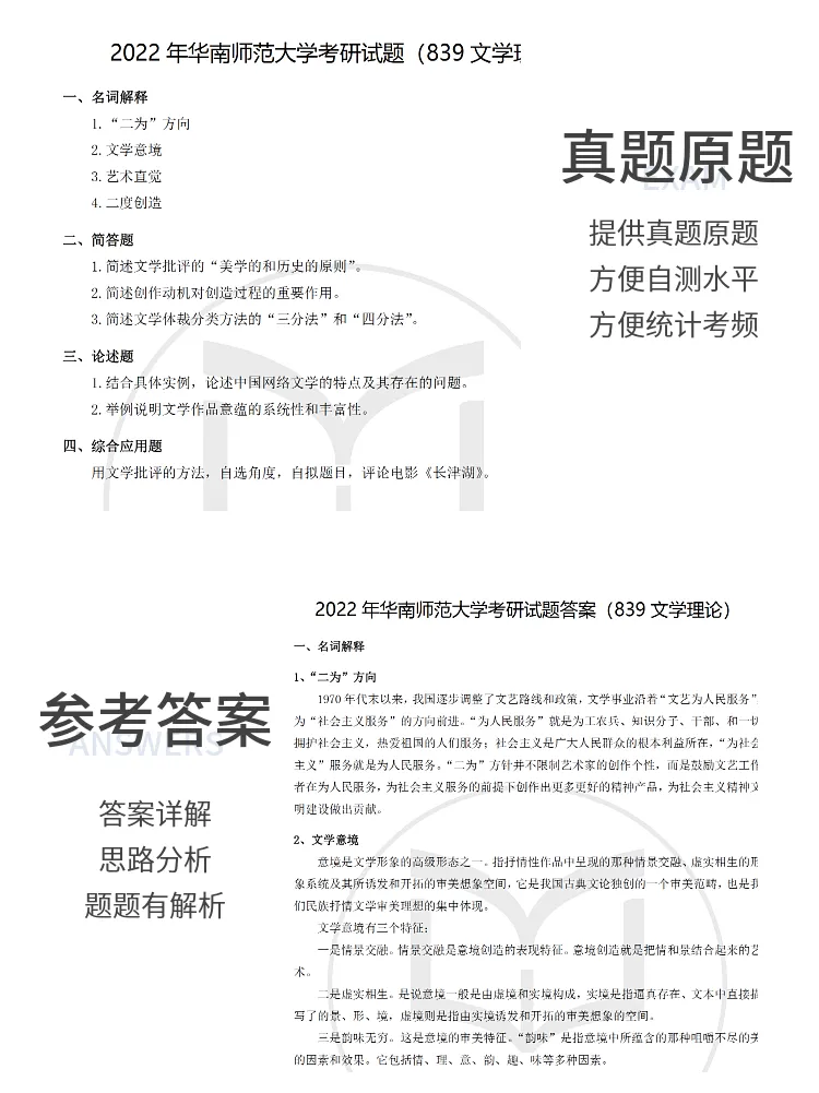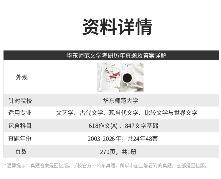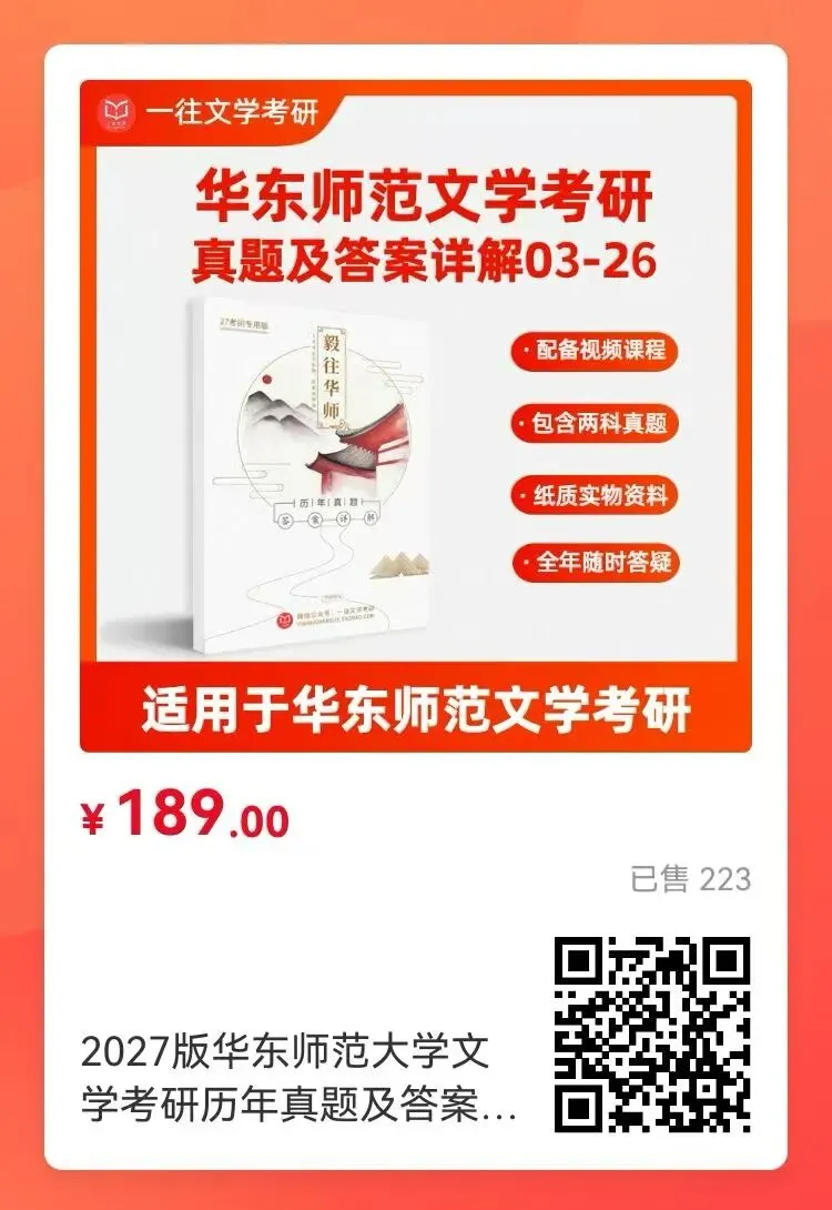 有同学说,不知道从哪里找院校的真题参考答案。今天推华东师范大学的。下单可以移步淘宝店铺“一往文学”,或者点击本文左下角“阅读原文”。