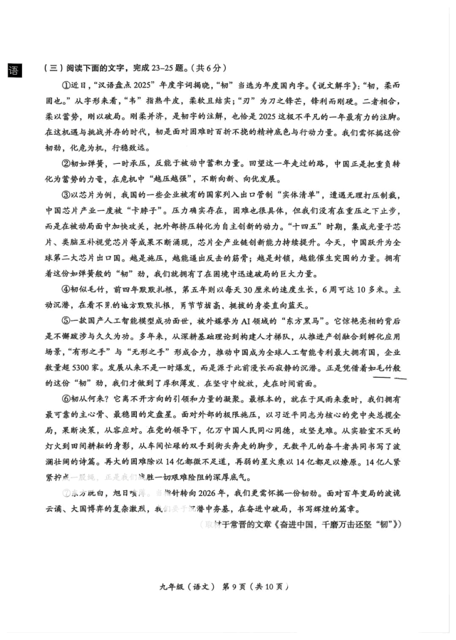>2026北京海淀初三一模语文试卷
