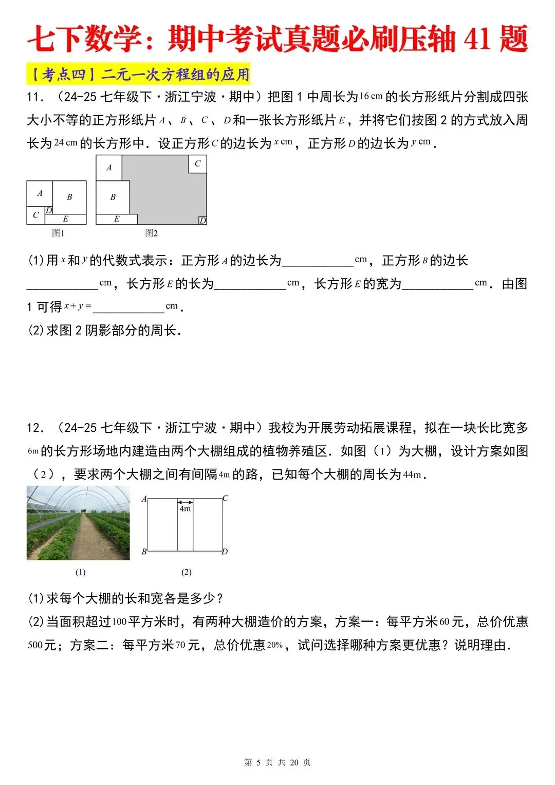七下数学期中考试真题必刷压轴41题七下数学 期中考试 真题必刷 压轴题 家长必读🔥