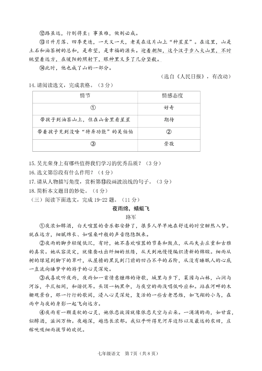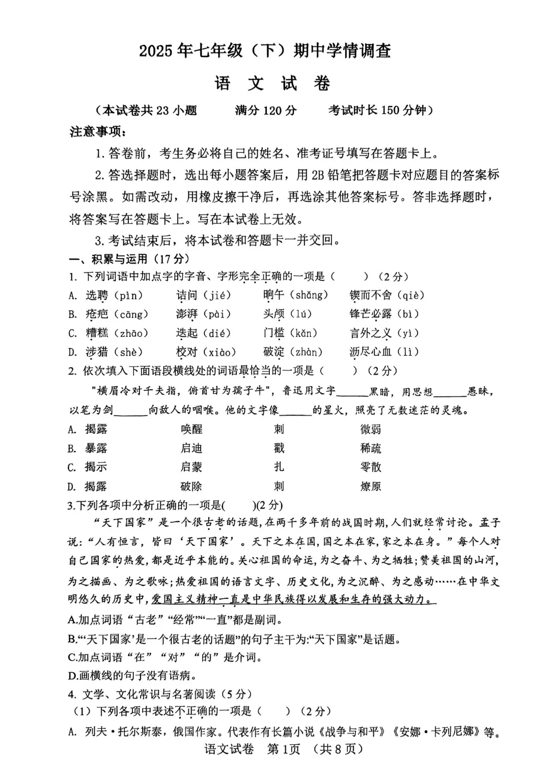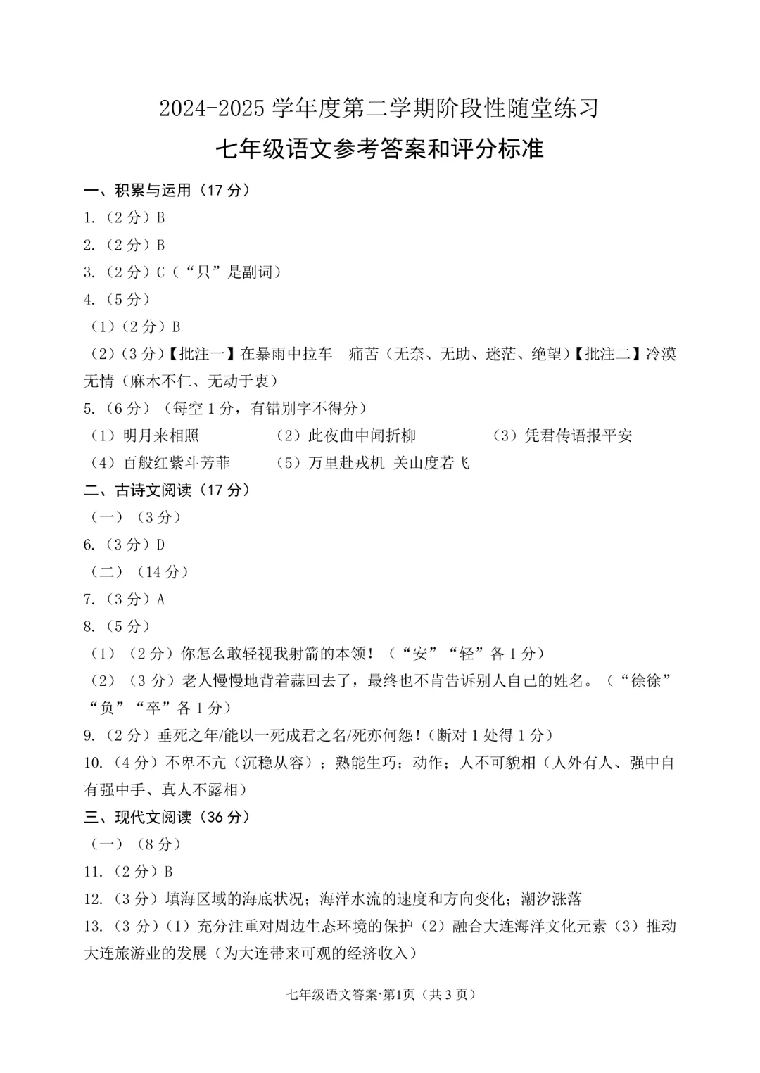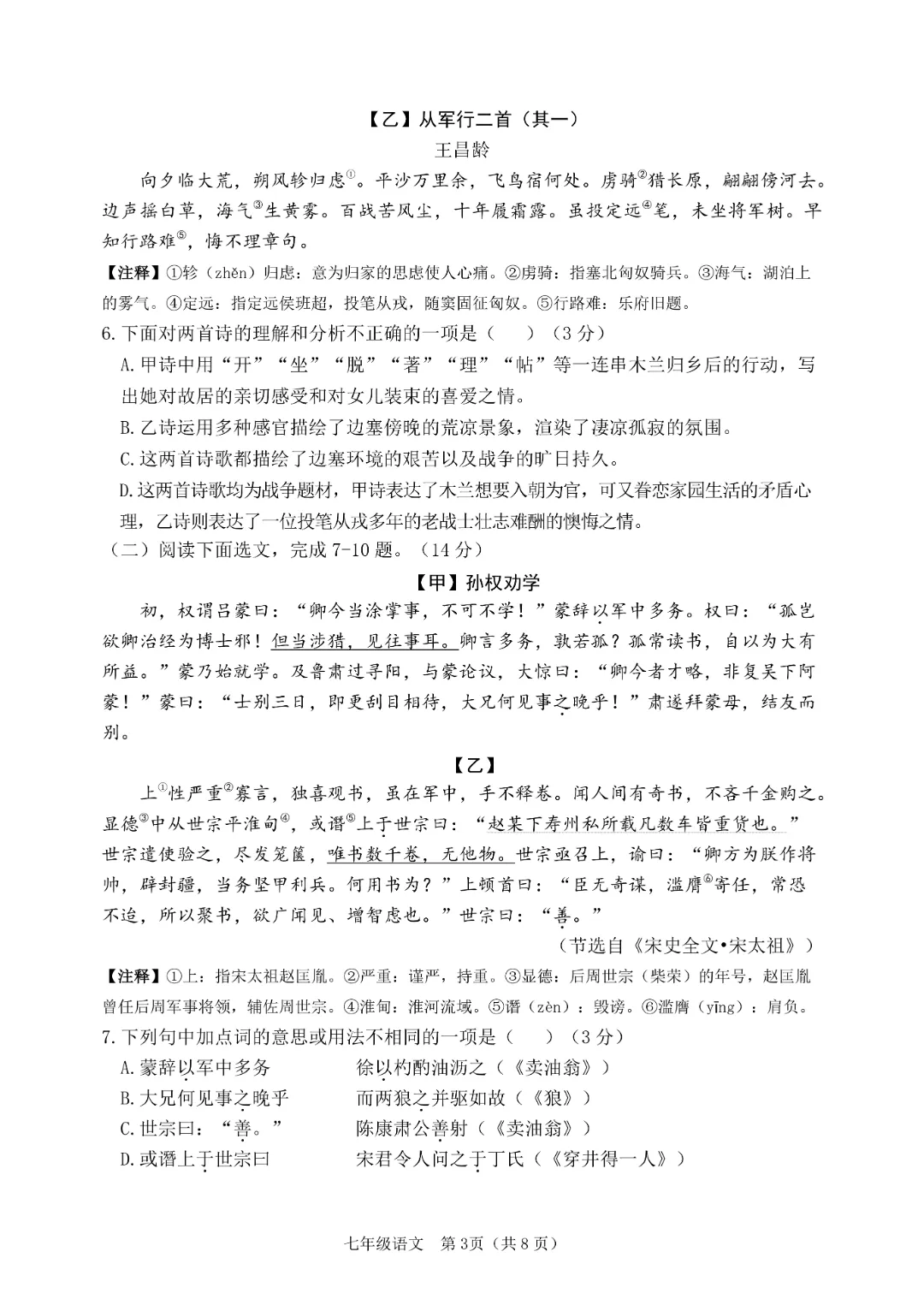 今天给大家分享的是:26新人教版七年级下册语文《历年期中考试真题卷3套含答案》|完整高清电子版可打印