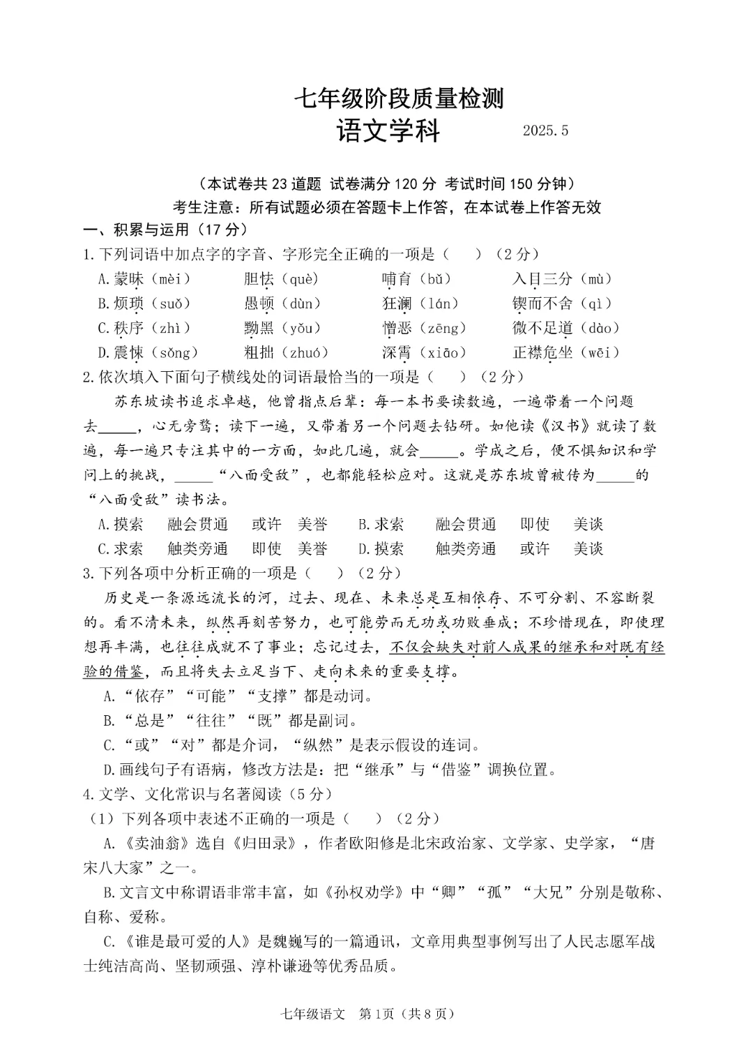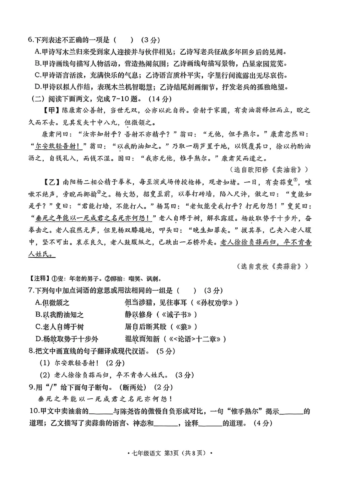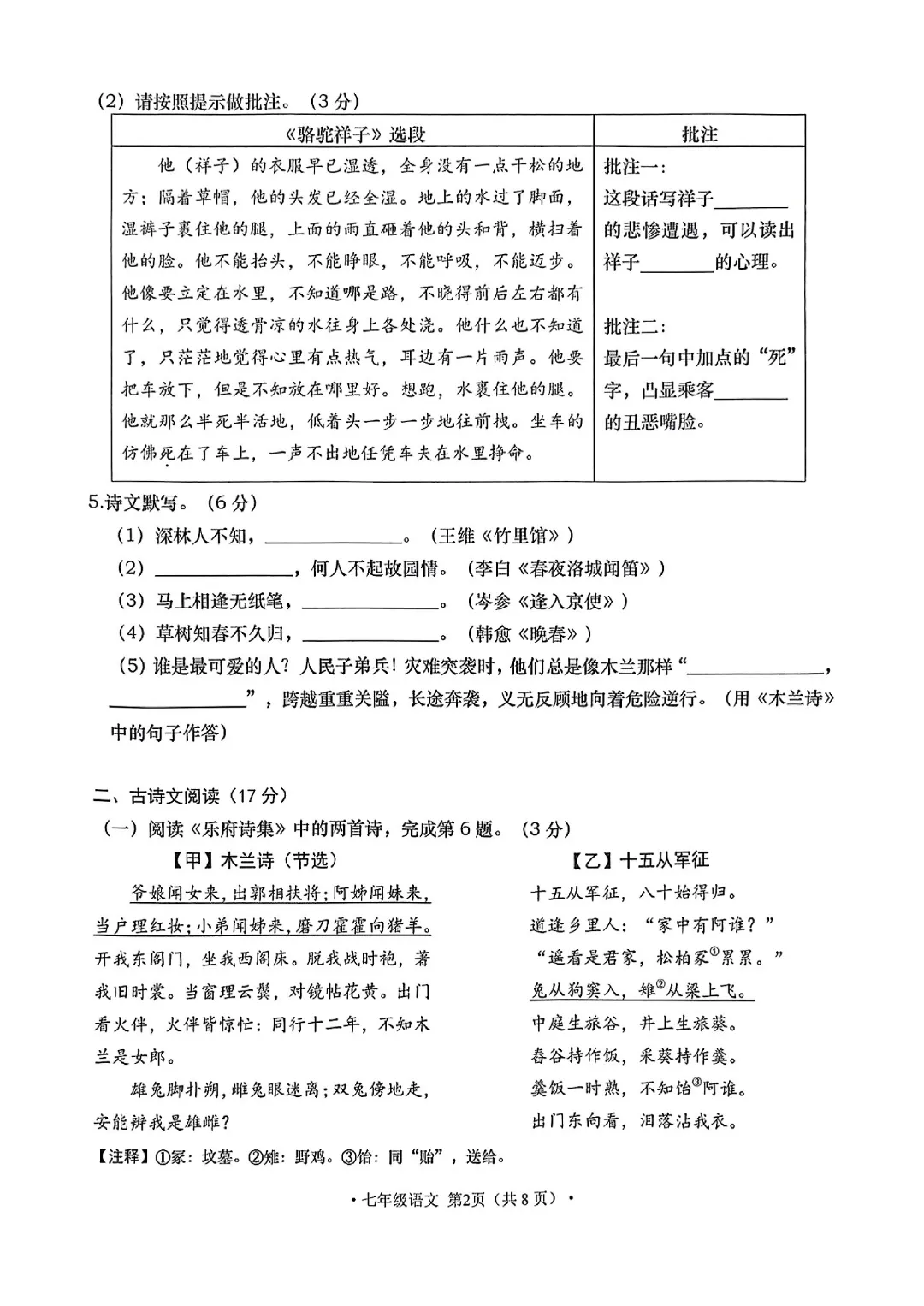 今天给大家分享的是:26新人教版七年级下册语文《历年期中考试真题卷3套含答案》|完整高清电子版可打印