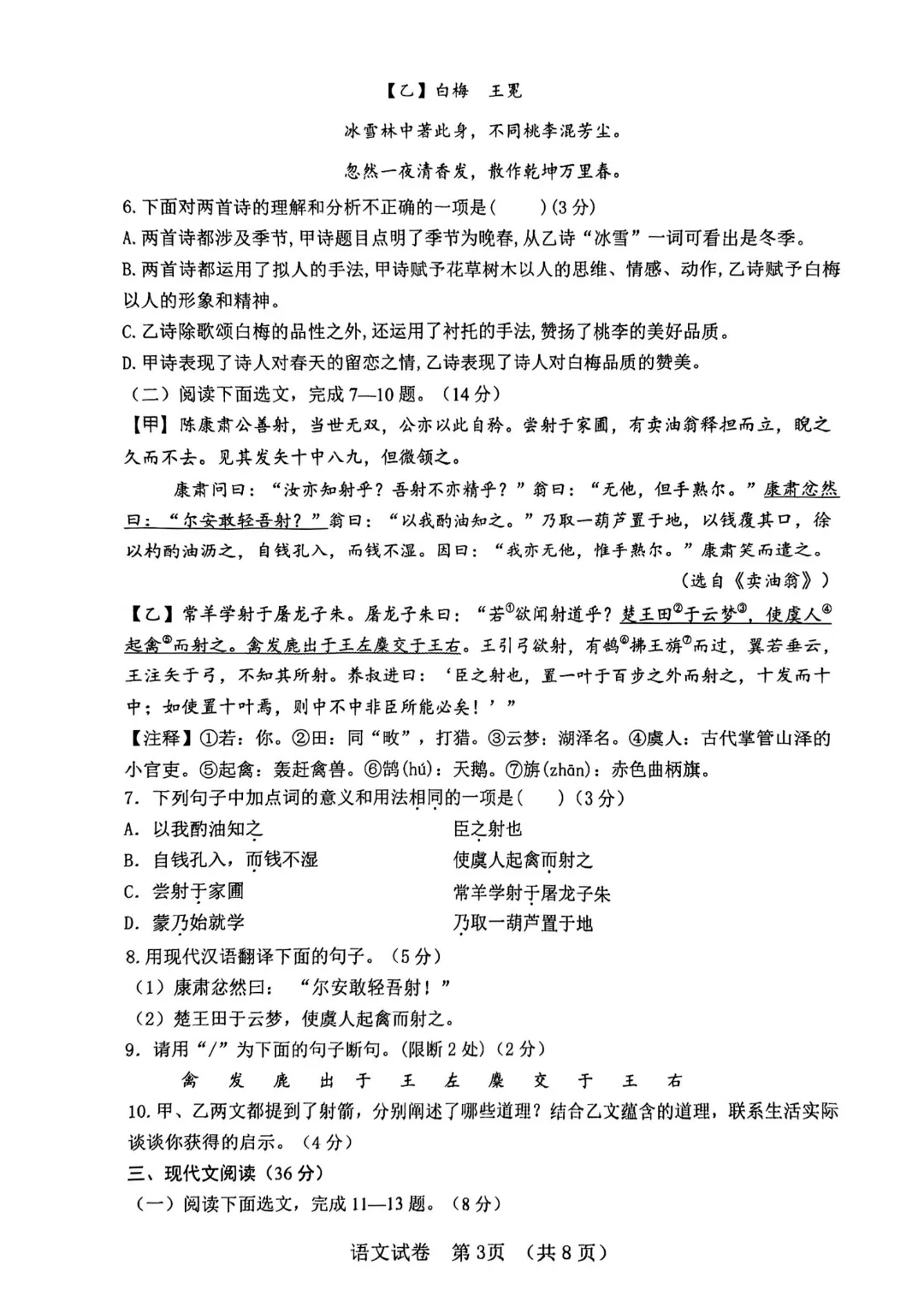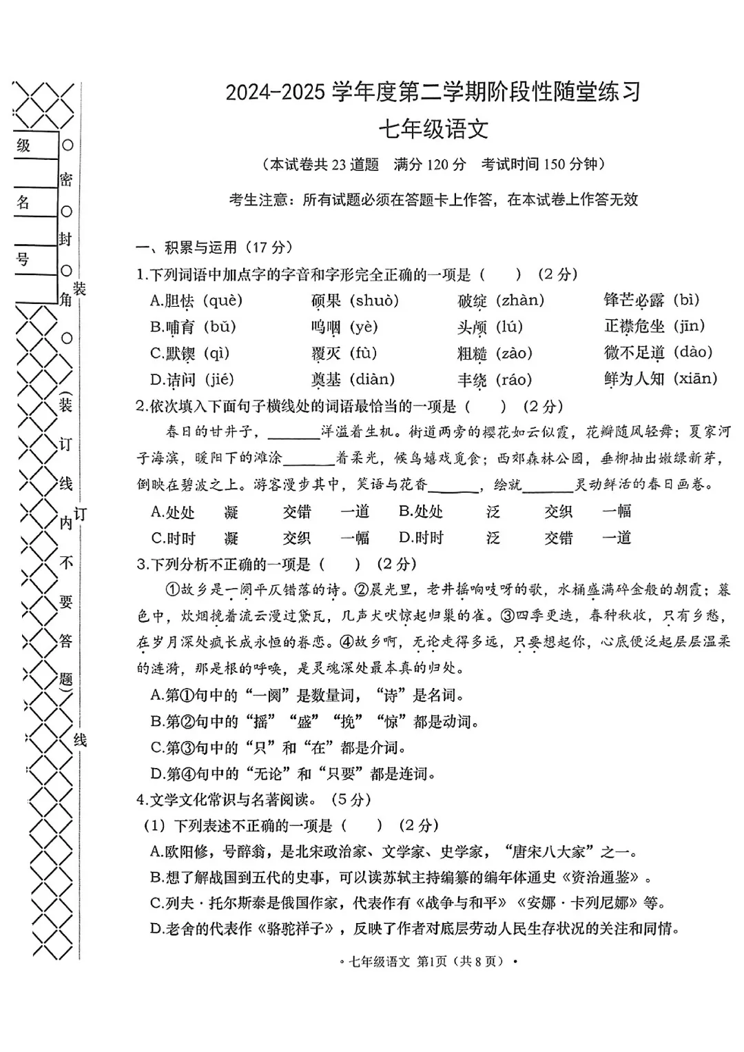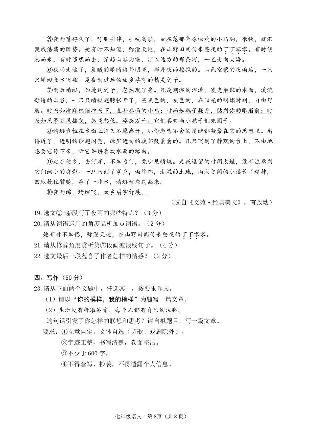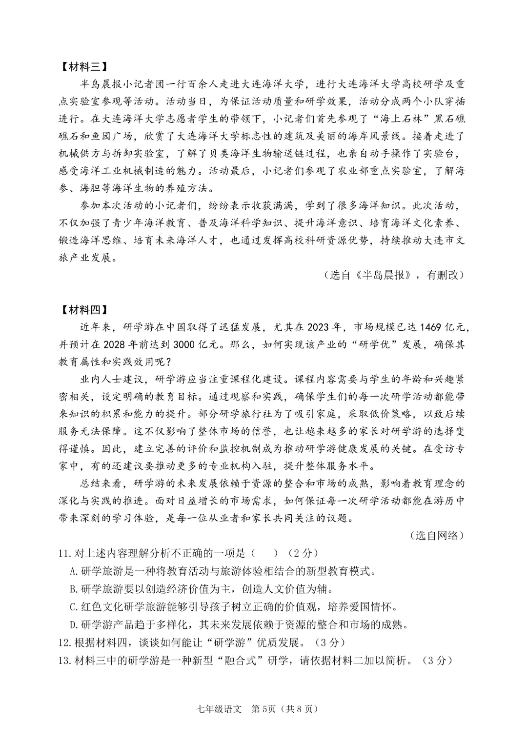 今天给大家分享的是:26新人教版七年级下册语文《历年期中考试真题卷3套含答案》|完整高清电子版可打印