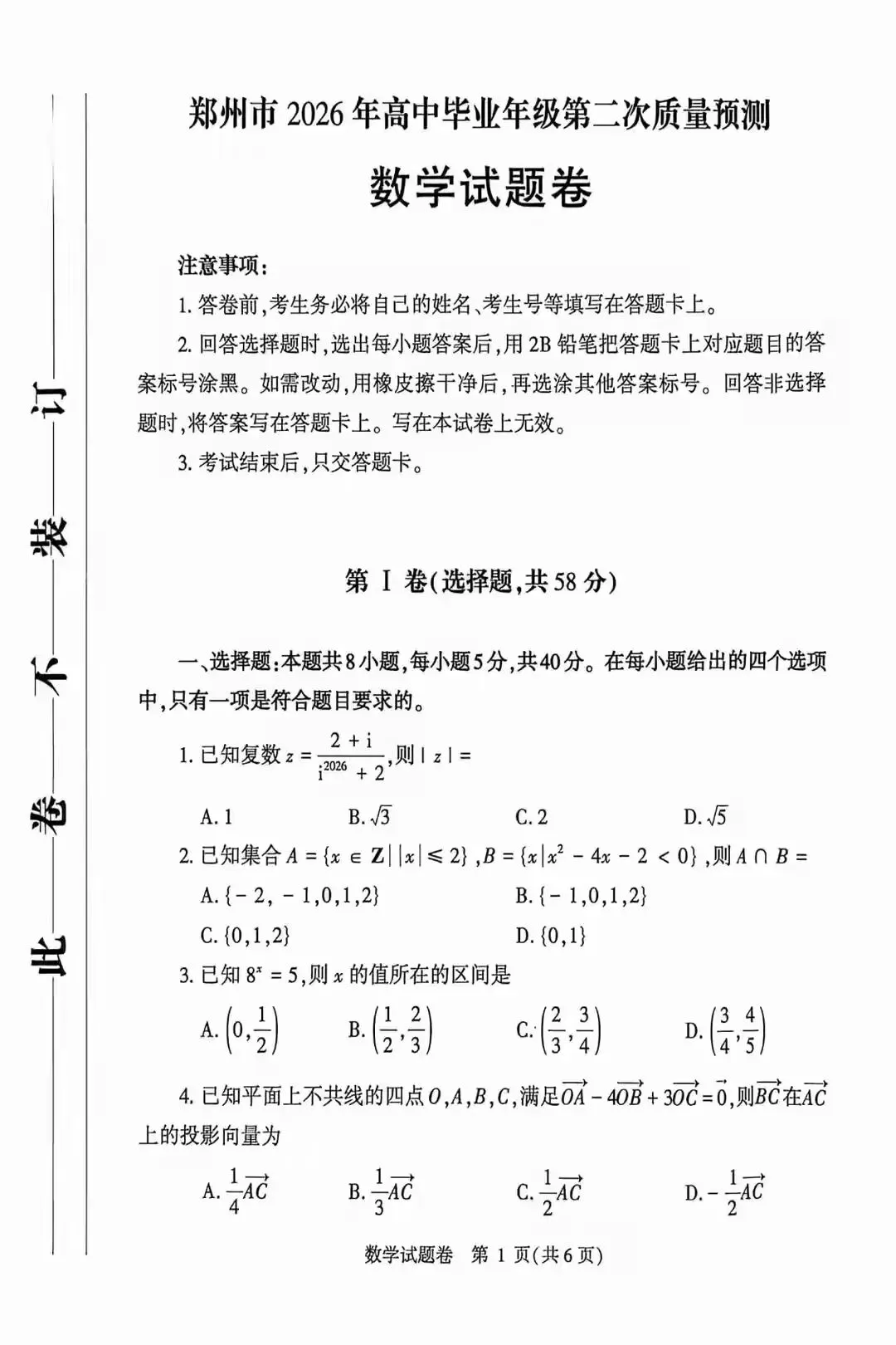 需要完整版试卷及解析的请复制下方链接我用夸克网盘给你分享了「2026年郑州二...答案解析」,点击链接或复制整段内容,打开「夸克APP」即可获取。