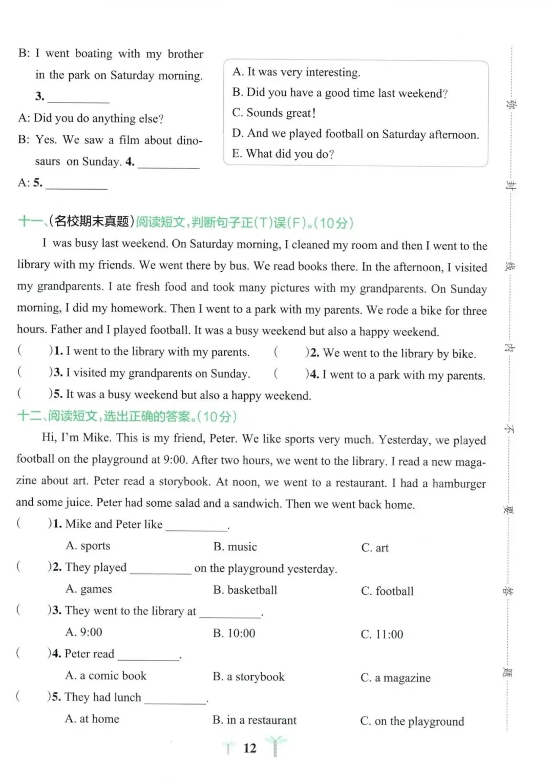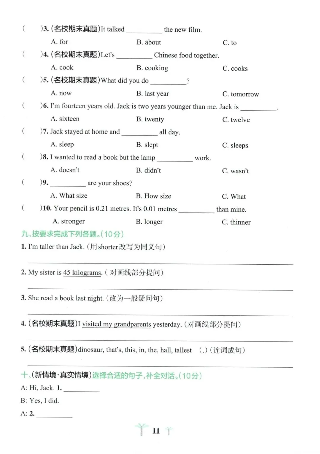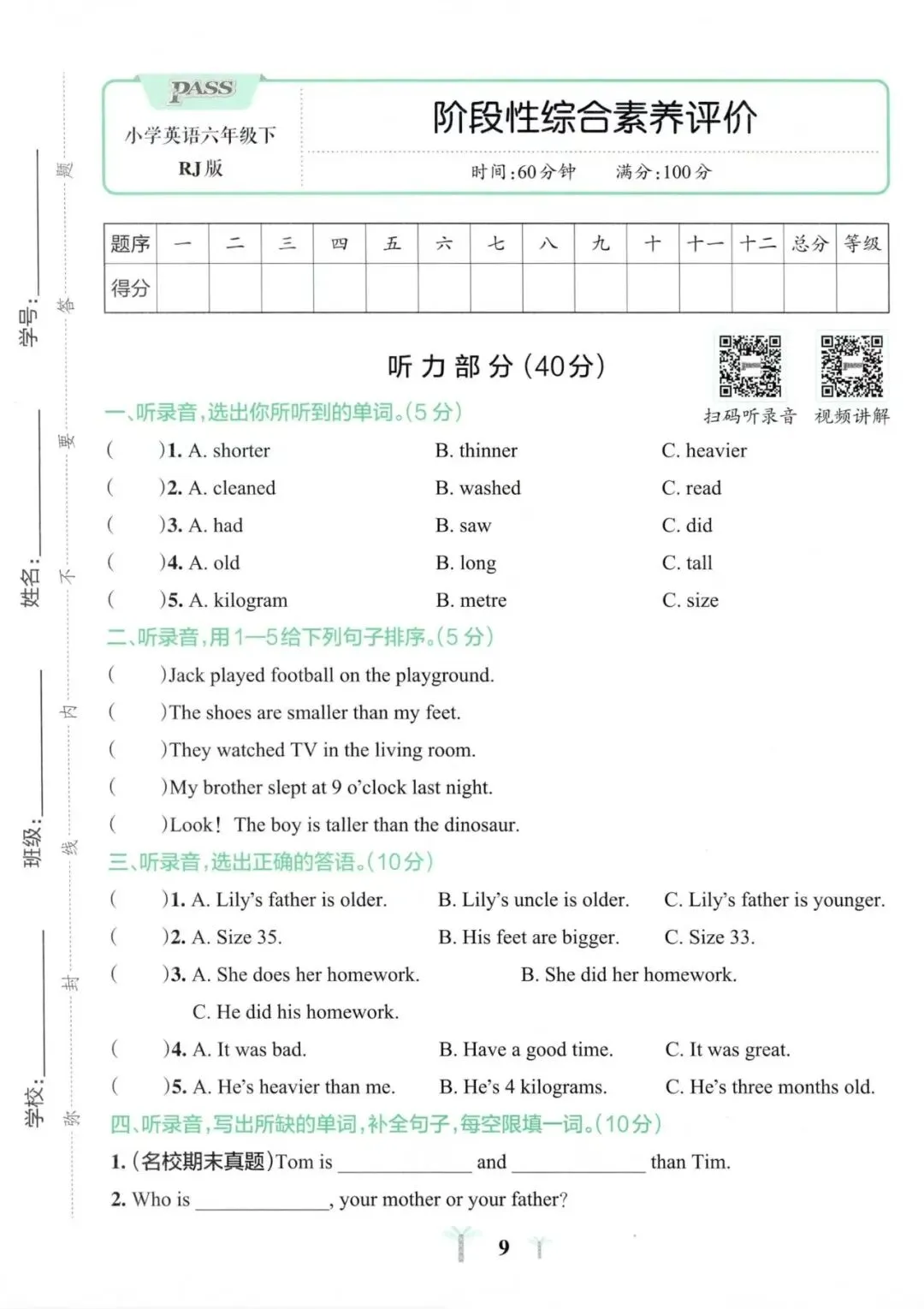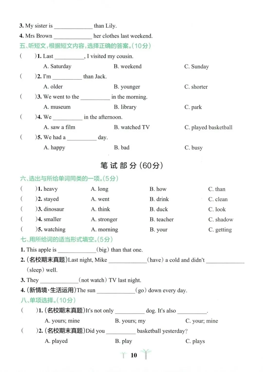 六年级英语期中试卷分享