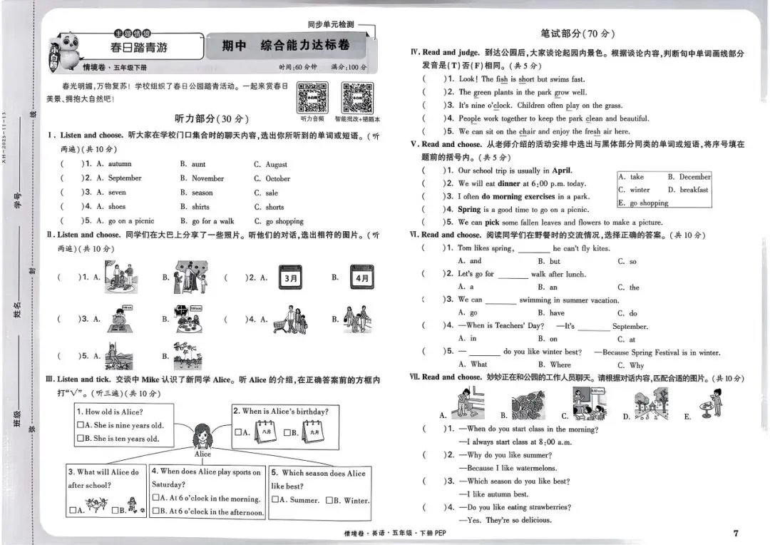 五年级英语期中试卷.pdf