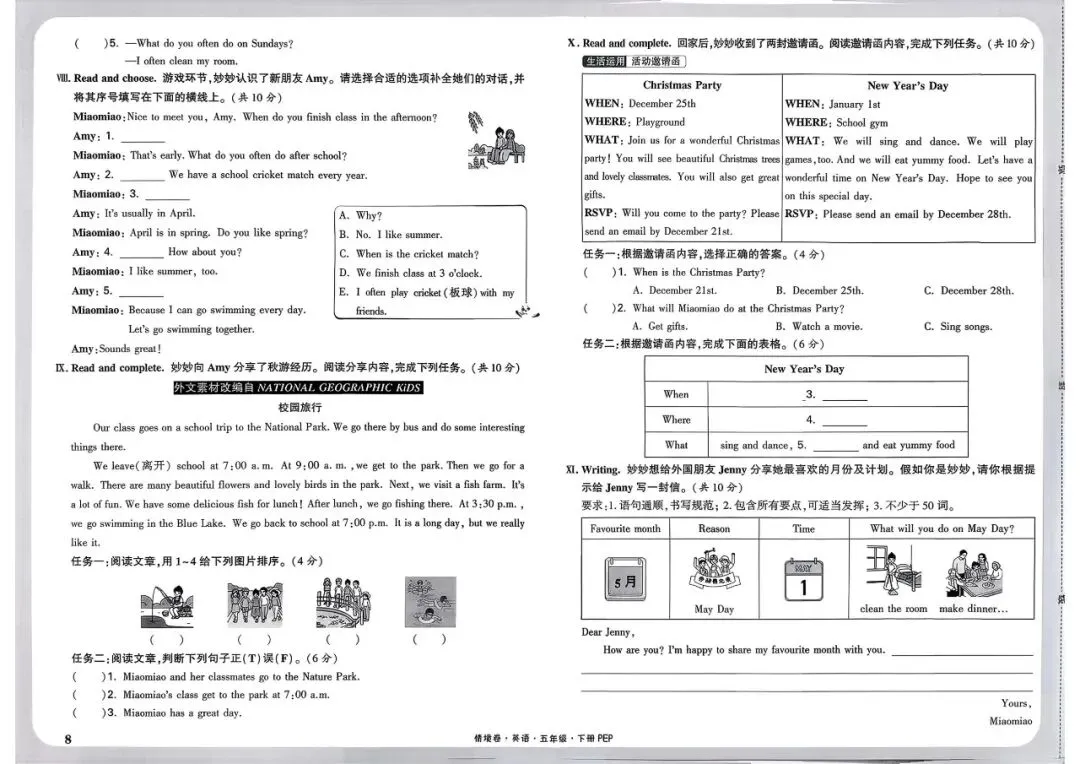 五年级英语期中试卷分享