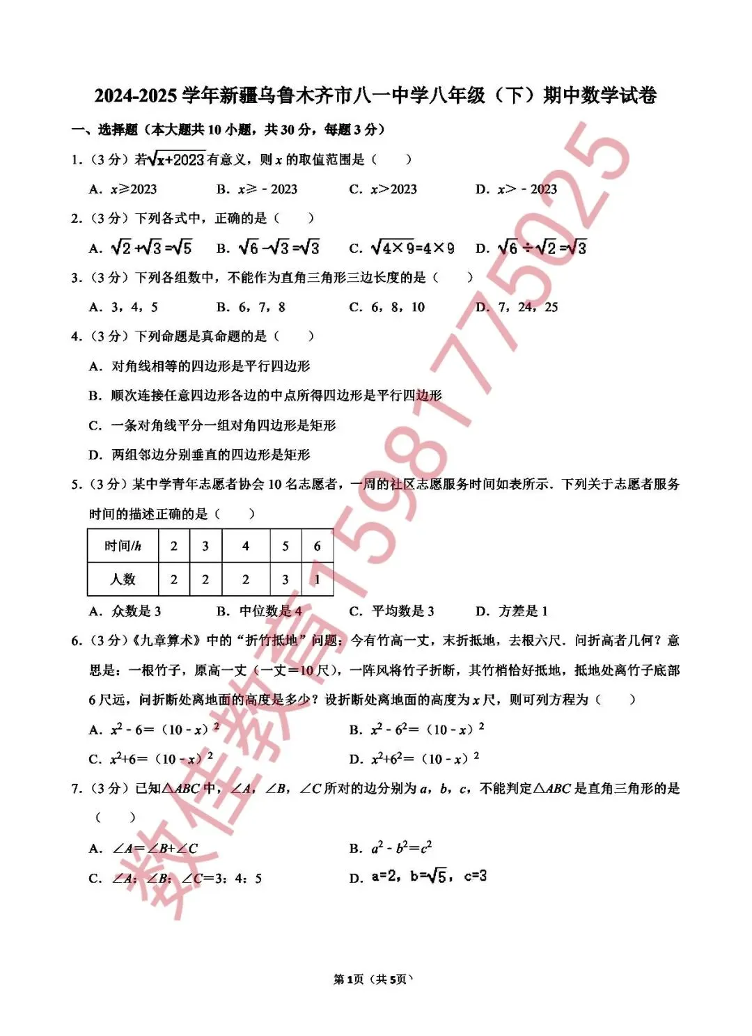 2026学年八年级语文下学期期中模拟试卷含解析(电子版可打印)