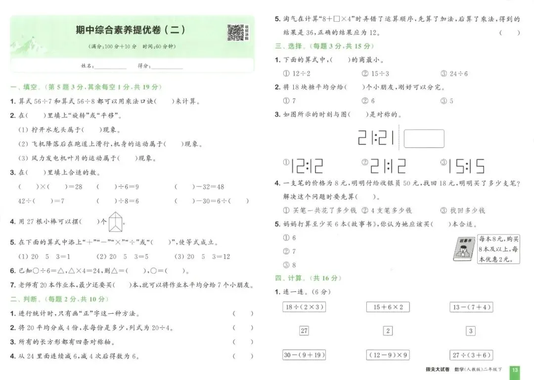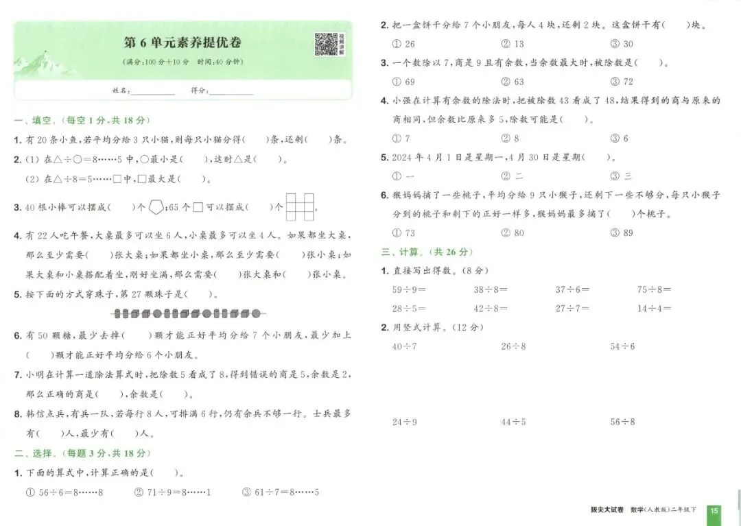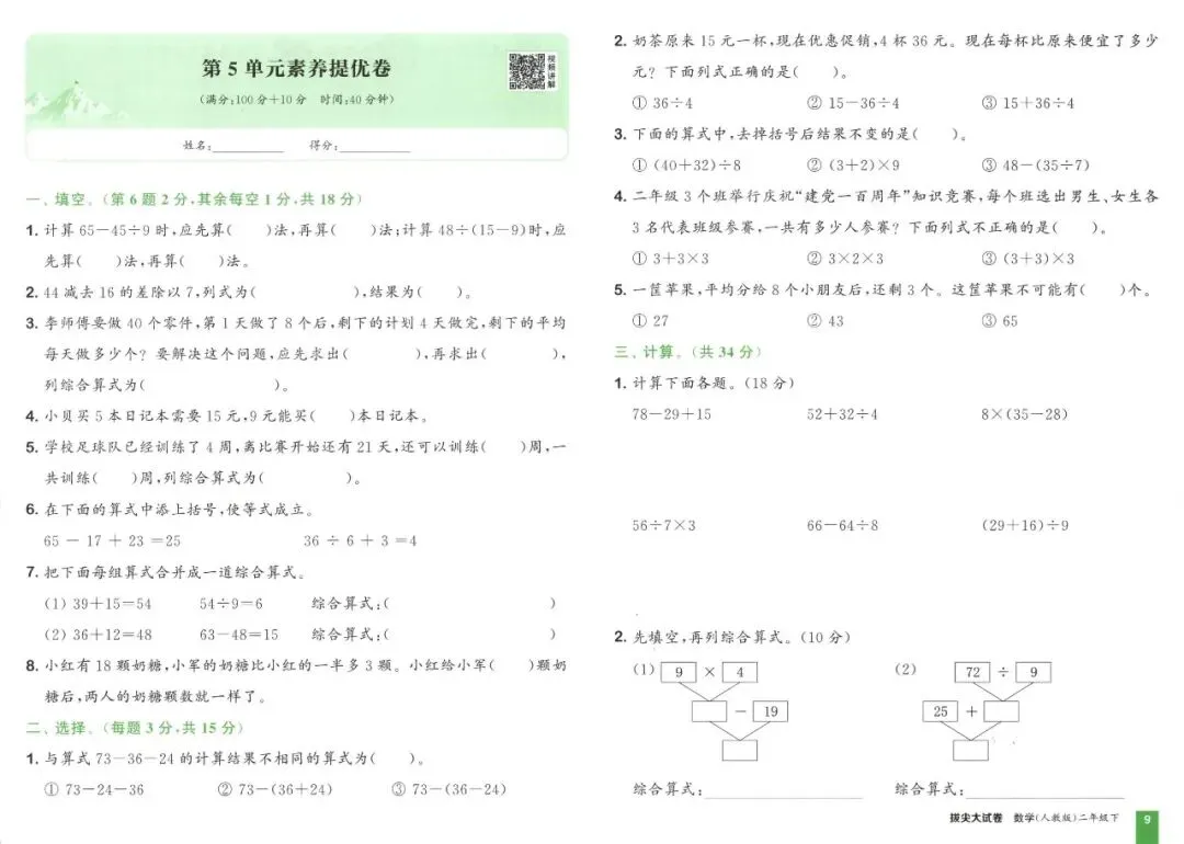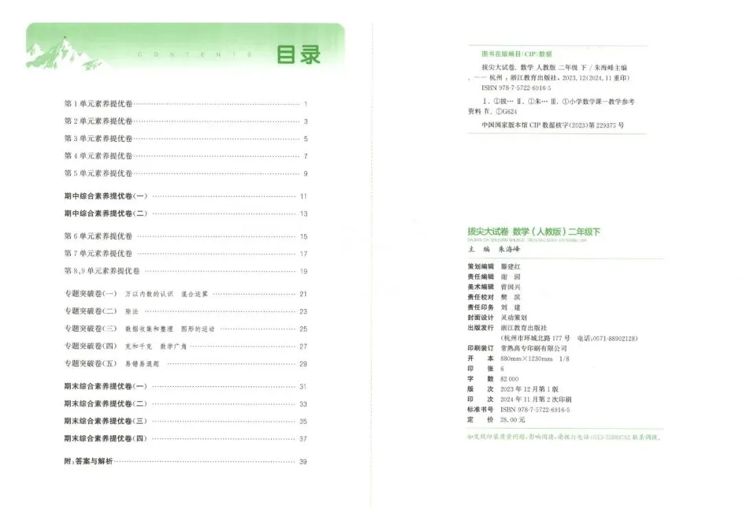 《拔尖大试卷》人教版数学二三四五六年级下册
