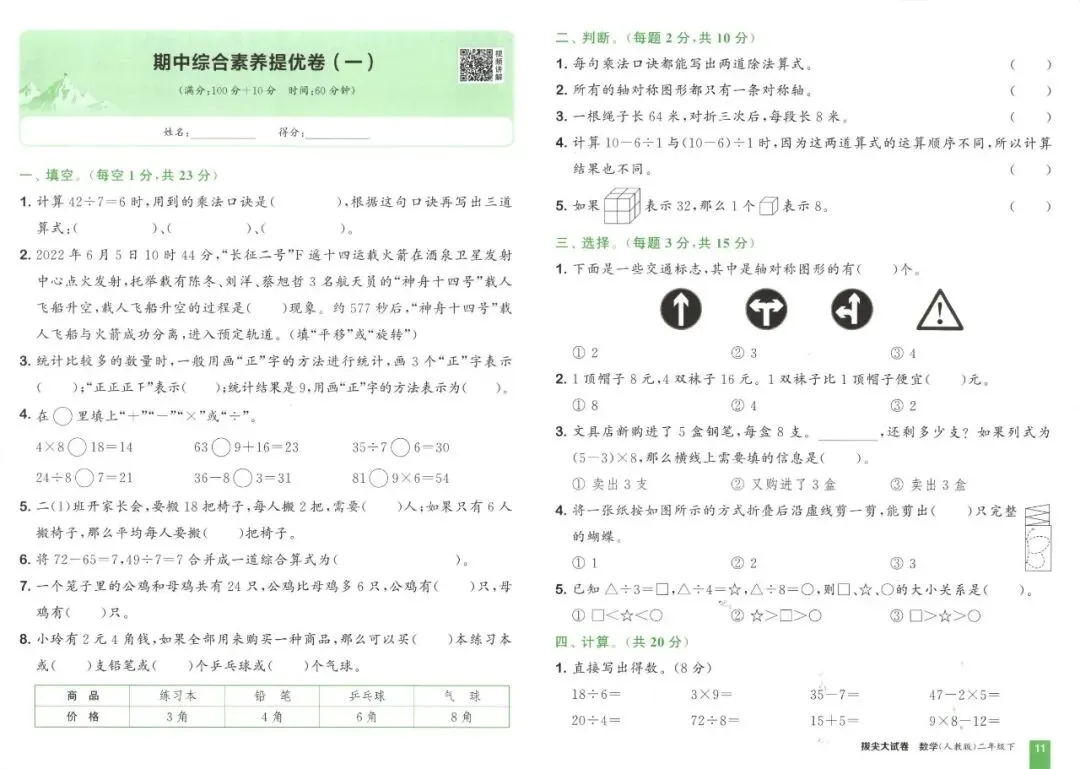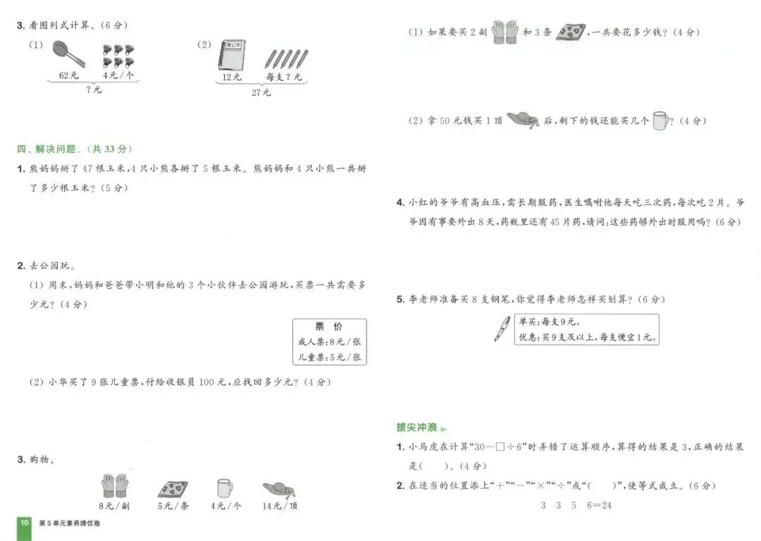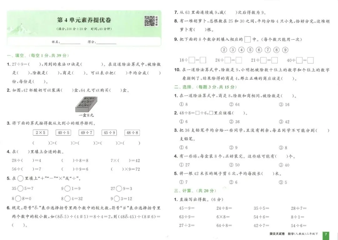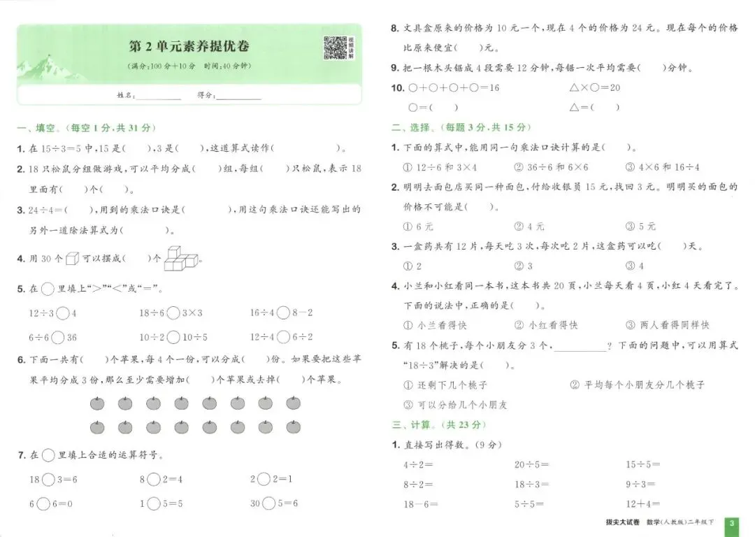 《拔尖大试卷》人教版数学二三四五六年级下册