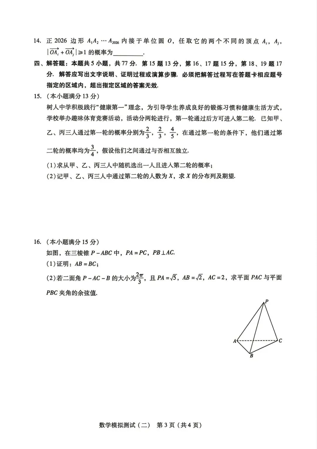 2026郑州高三二模数学试卷带答案,文末下载