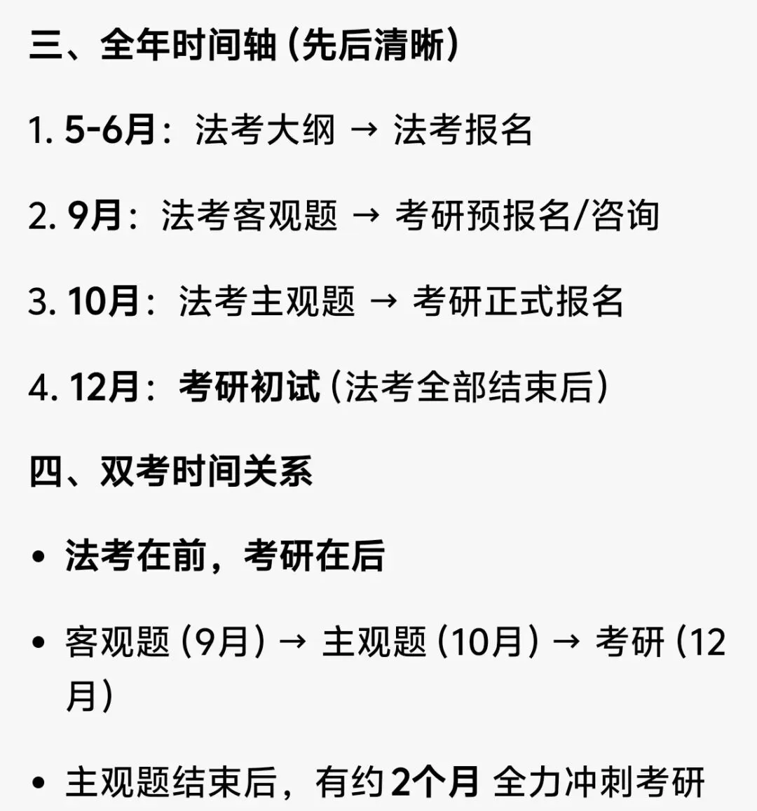 这样一想,与其等待研究生毕业再选择法考,双考确实更好一些。总归本科阶段时间还算富裕。