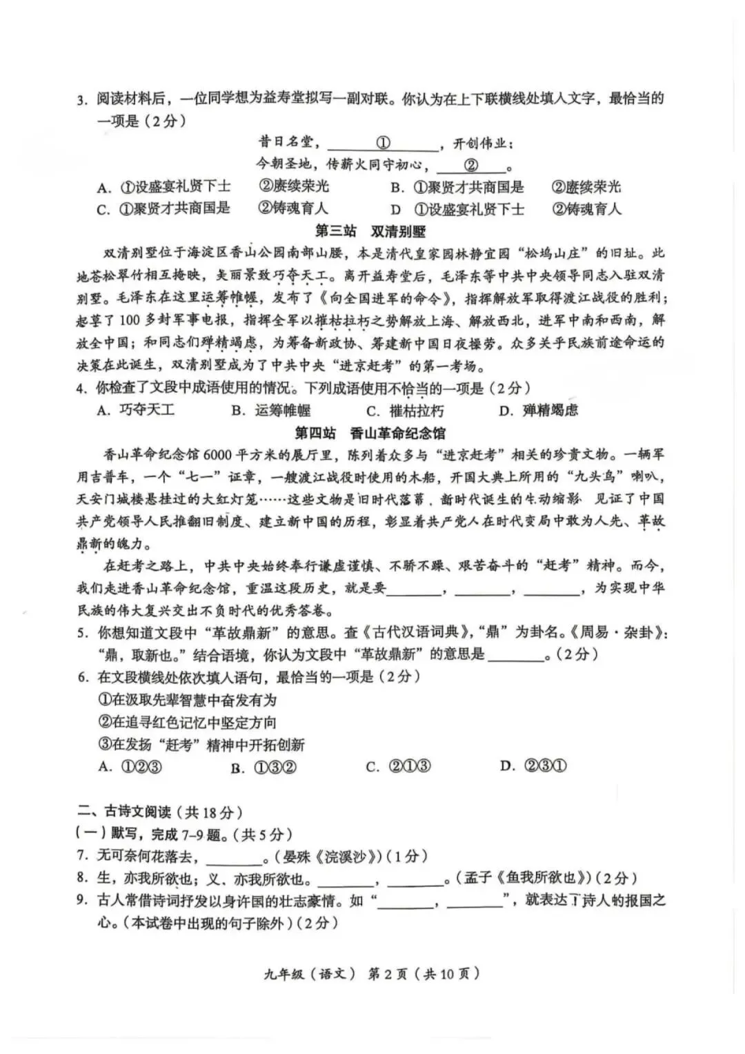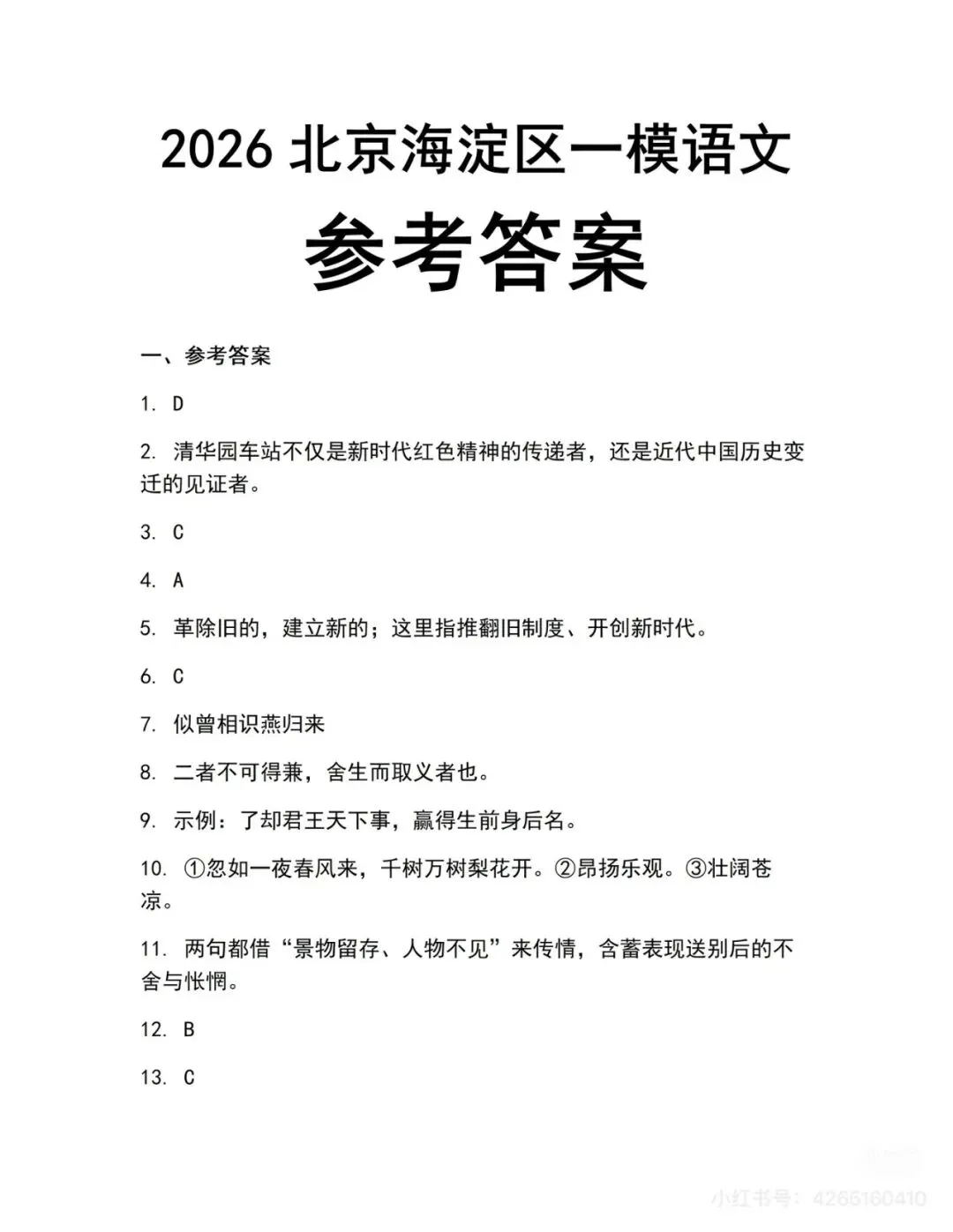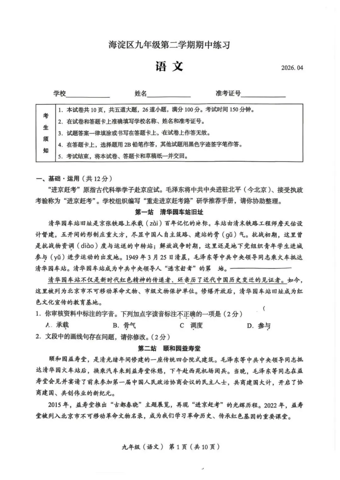 2026.4.21海淀区初三一模语文已经考完,和大家分享下本次的语文试卷及参考答案,完整的试卷可以在文后下载