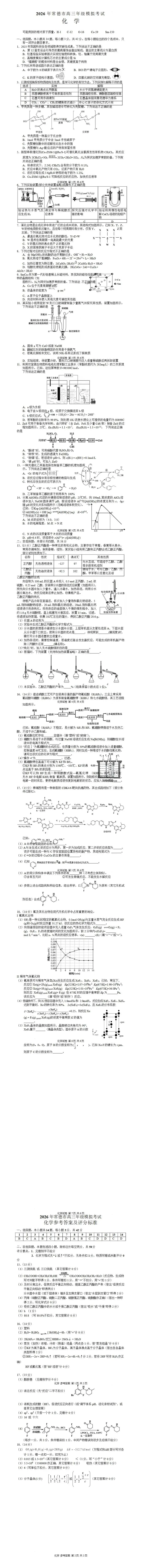 当前位置:首页>考研真题>《高中试卷》湖南省常德市2026届高三下学期模拟考试(二模)化学(含答案)