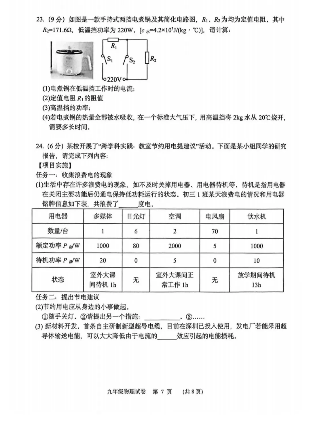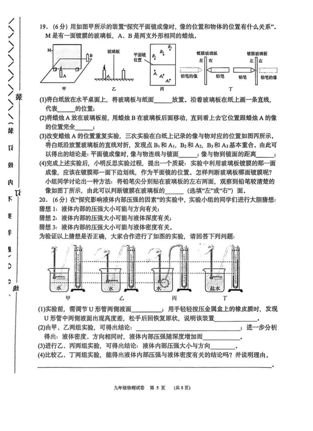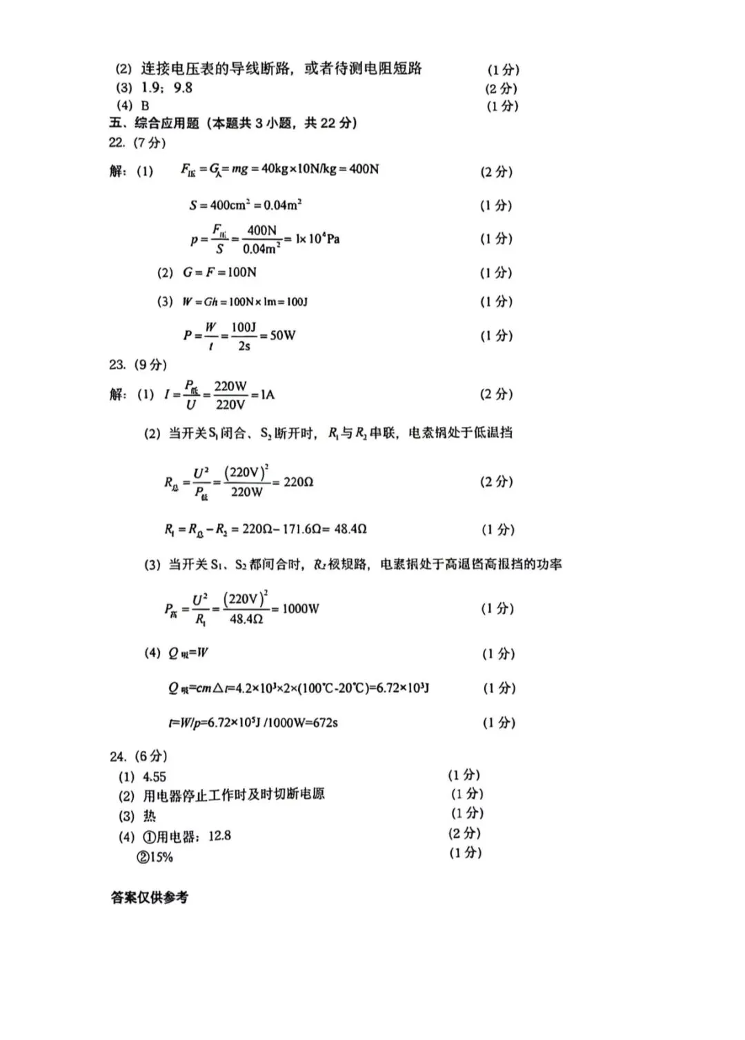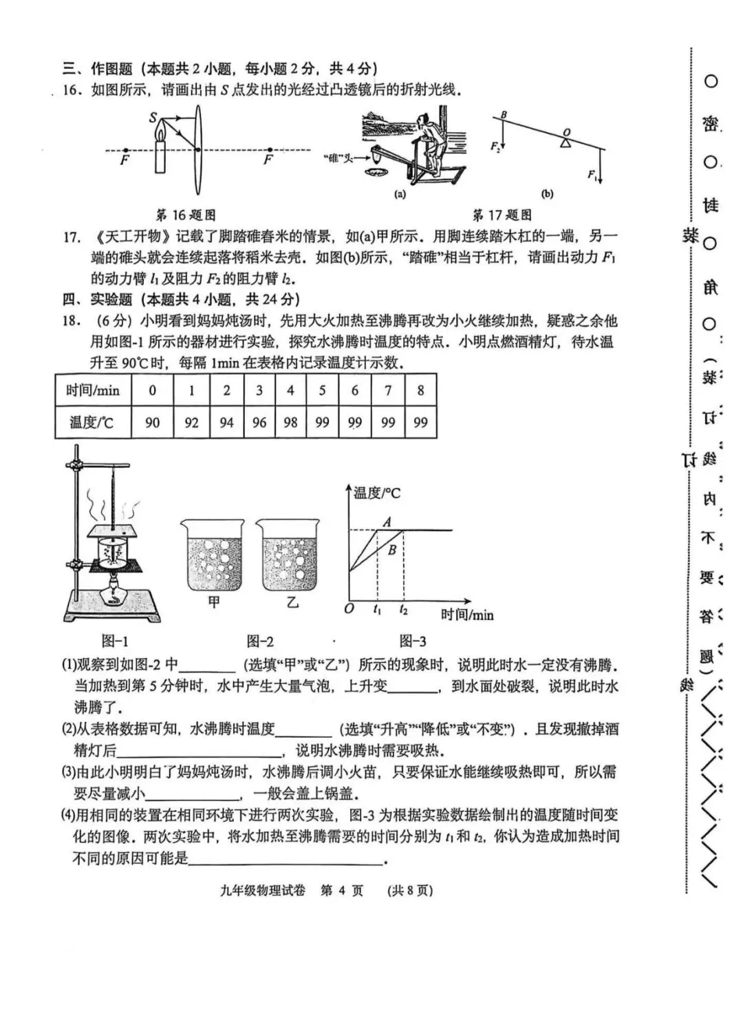 整体而言,基础题的正确率能反映出学生对教材核心知识点的掌握情况,同时也暴露出部分学生对概念理解不透彻、审题不细致的问题。本套试卷的难点集中在实验探究与综合应用题部分,能有效考查学生的科学探究能力和知识综合运用能力。实验题部分,第18题的水沸腾实验、第19题的平面镜成像实验、第20题的液体压强实验、第21题的伏安法测电阻实验,均为中考高频实验,既考查了实验操作细节、现象分析,也涉及误差分析和多次实验的目的,对学生的实验探究能力提出了较高要求。综合应用题中,第22题的力学压强与功的计算、第23题的电热器档位计算、第24题的跨学科实践题,结合了生活实际,需要学生将物理知识与实际问题相结合,进行建模、计算和分析,对学生的综合能力和计算规范性提出了更高的要求。