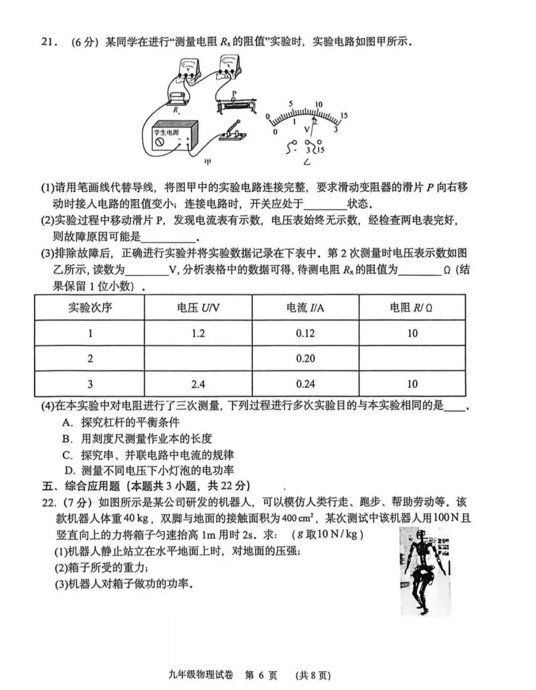 2026阜新市九下物理电学试卷分析(YZ)