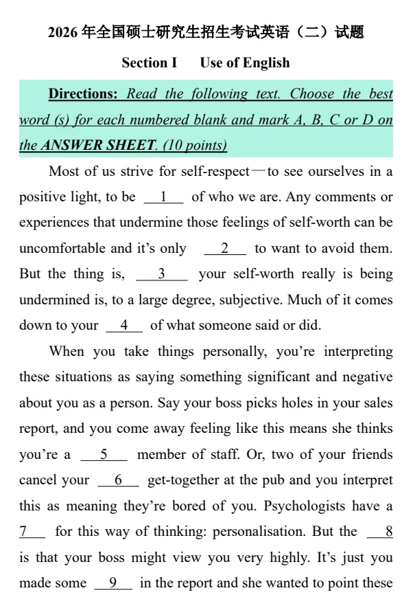 2026考研英语真题及答案合集