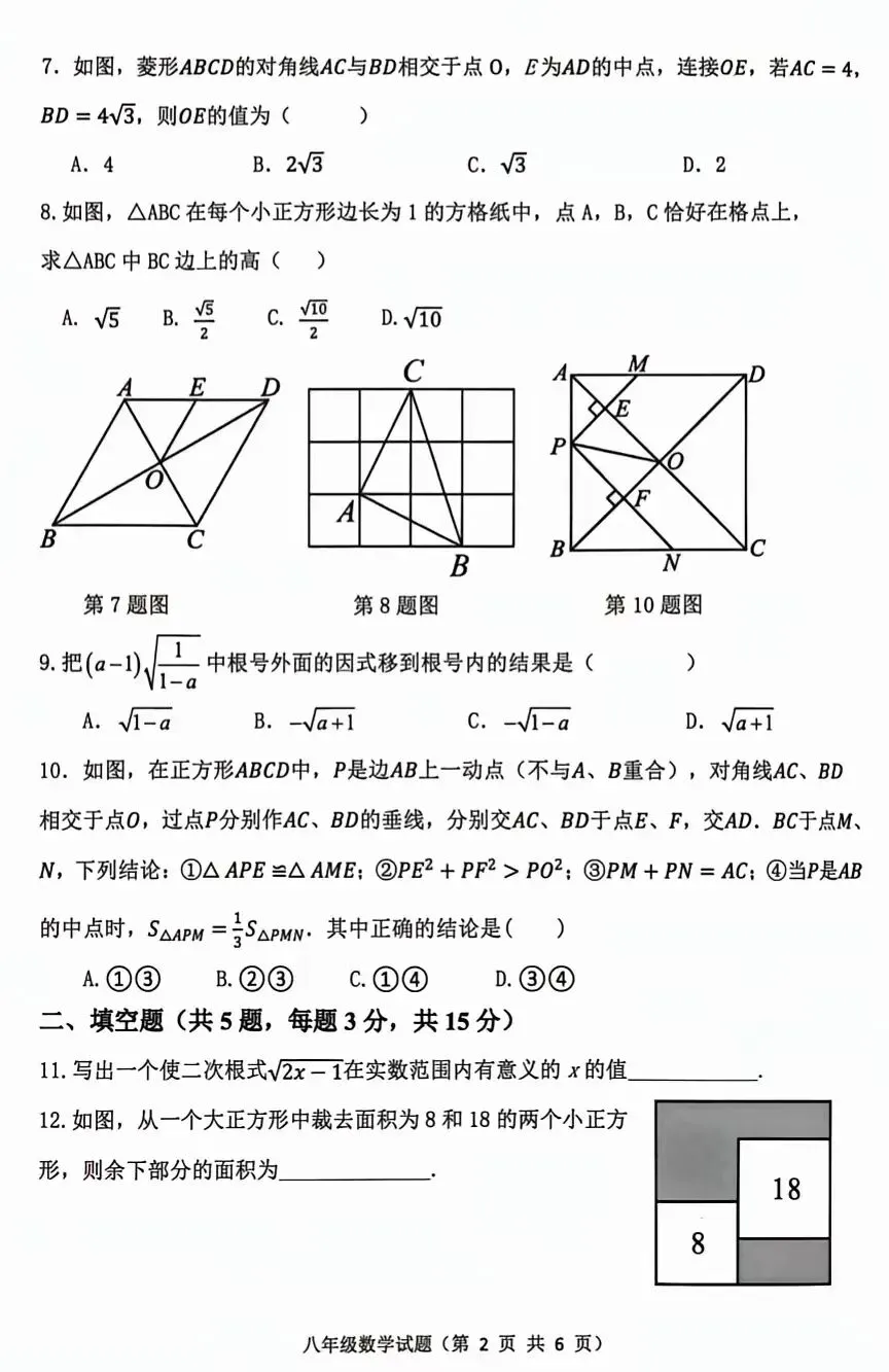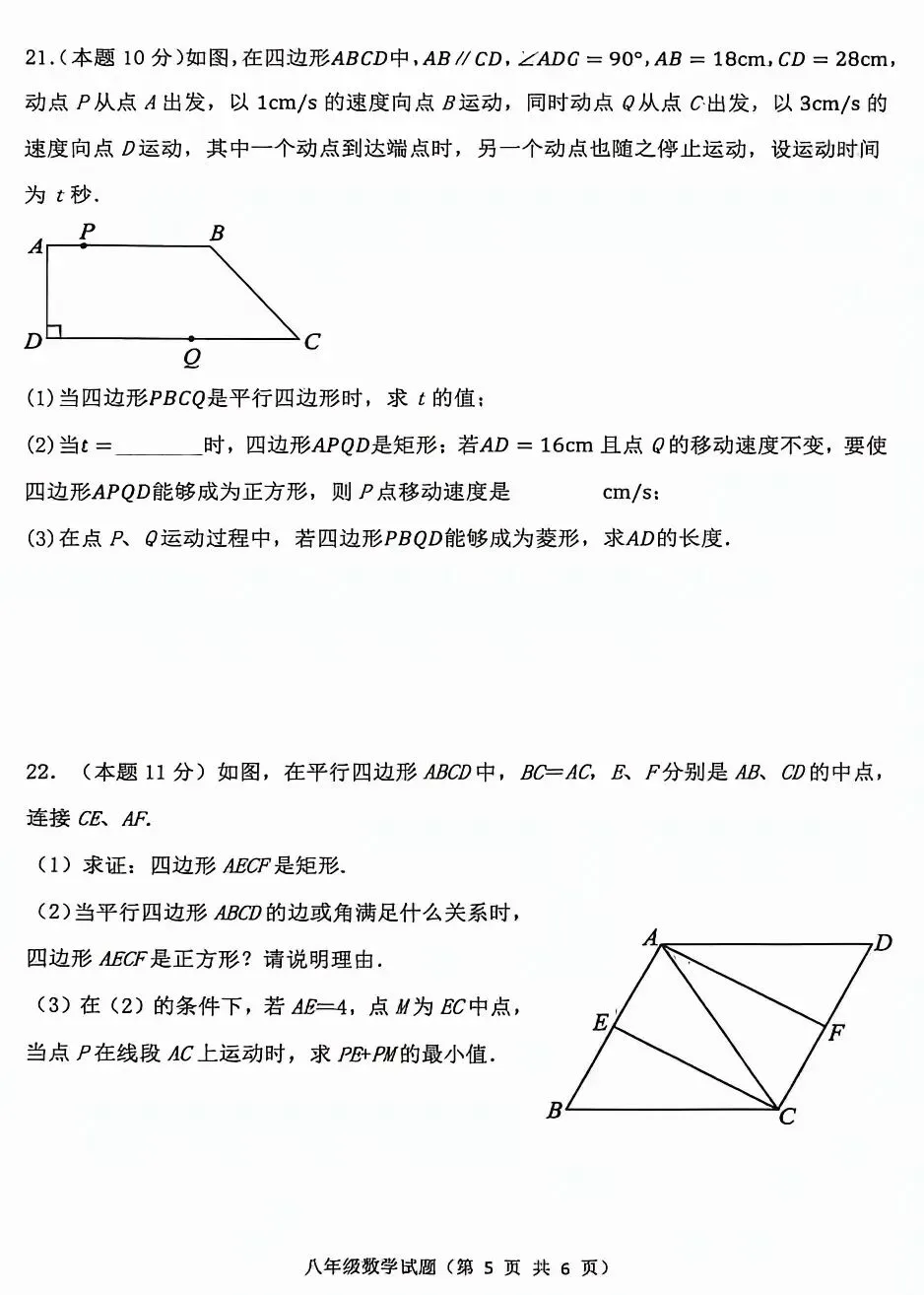 八下数学期中测试卷