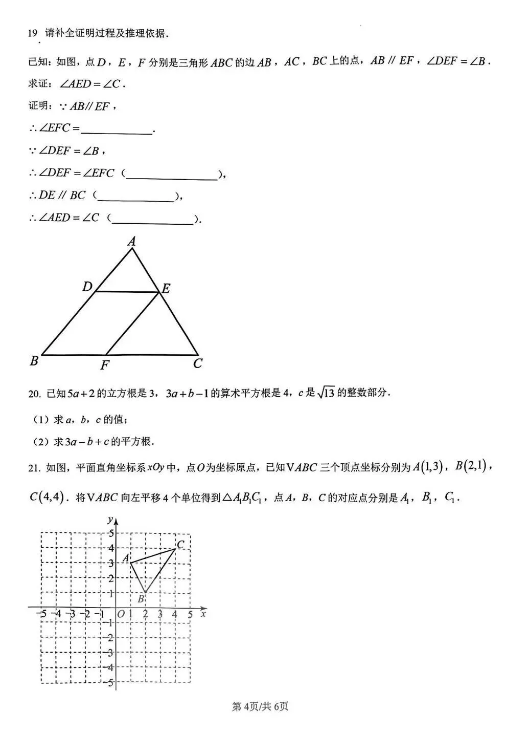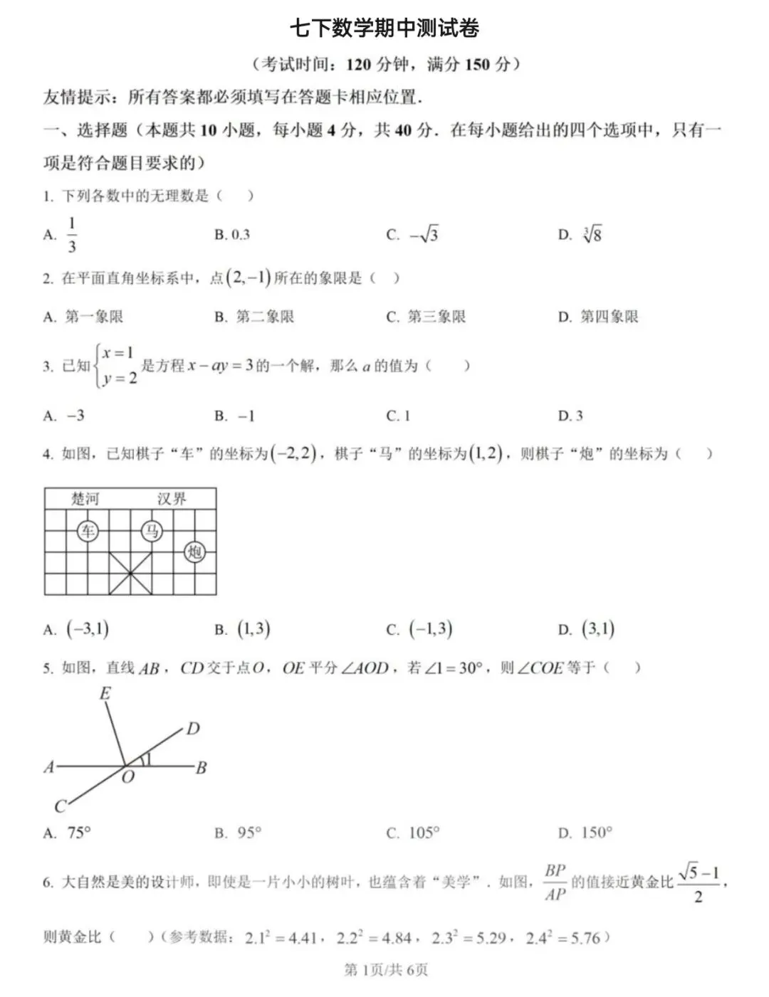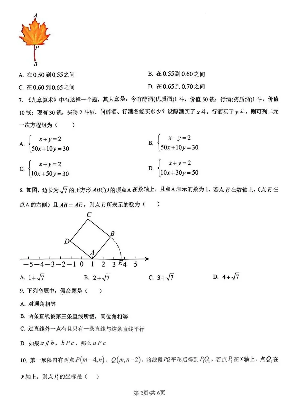 【期中数学试卷】2025-2026学年七年级下学期期中监测卷(人教)